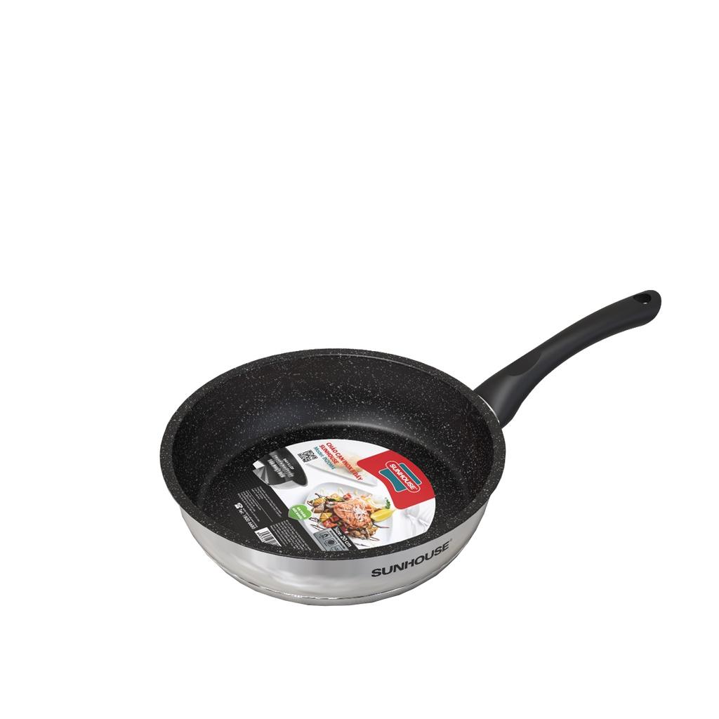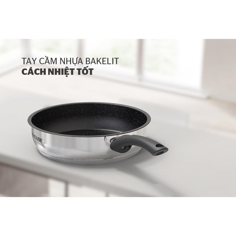 Với chất liệu inox không gỉ cùng lớp chống dính Whitford (USA) cao cấp, chảo cạn inox 5 đáy SUNHOUSE IN28M4 giúp cho công việc xào nấu được nhanh chóng và gọn nhẹ hơn rất nhiều.