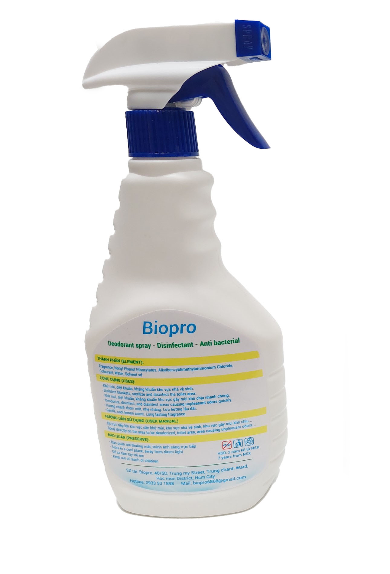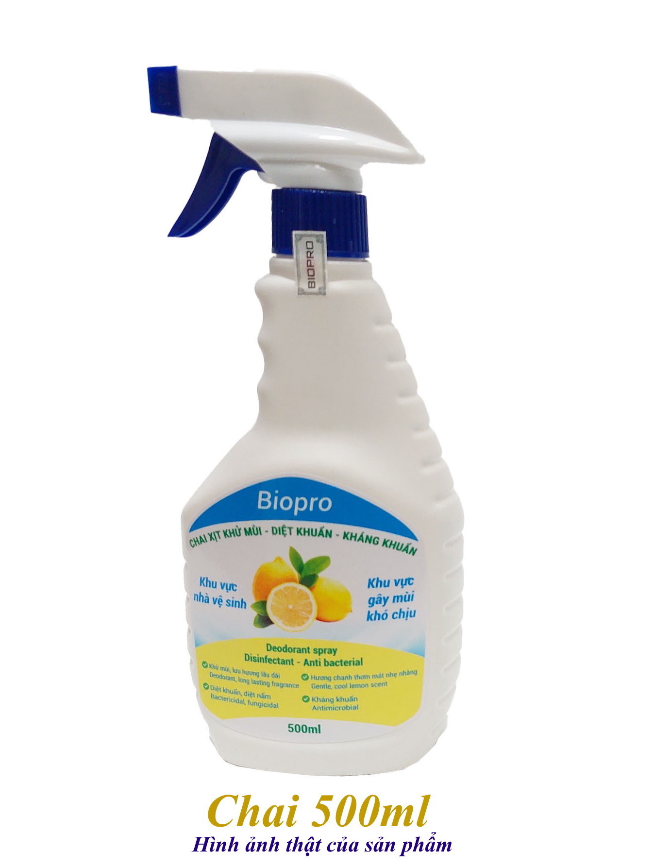Chai xịt Biopro 500ml khử mùi diệt khuẩn kháng khuẩn Khu vực gây mùi khó chịu Khu vực nhà vệ sinh Hương chanh thơm mát => Shop xin cam kết Hạn sử dụng của sản phẩm vẫn còn xa (Sản phẩm chất lượng, Hàng luôn mới sản xuất)