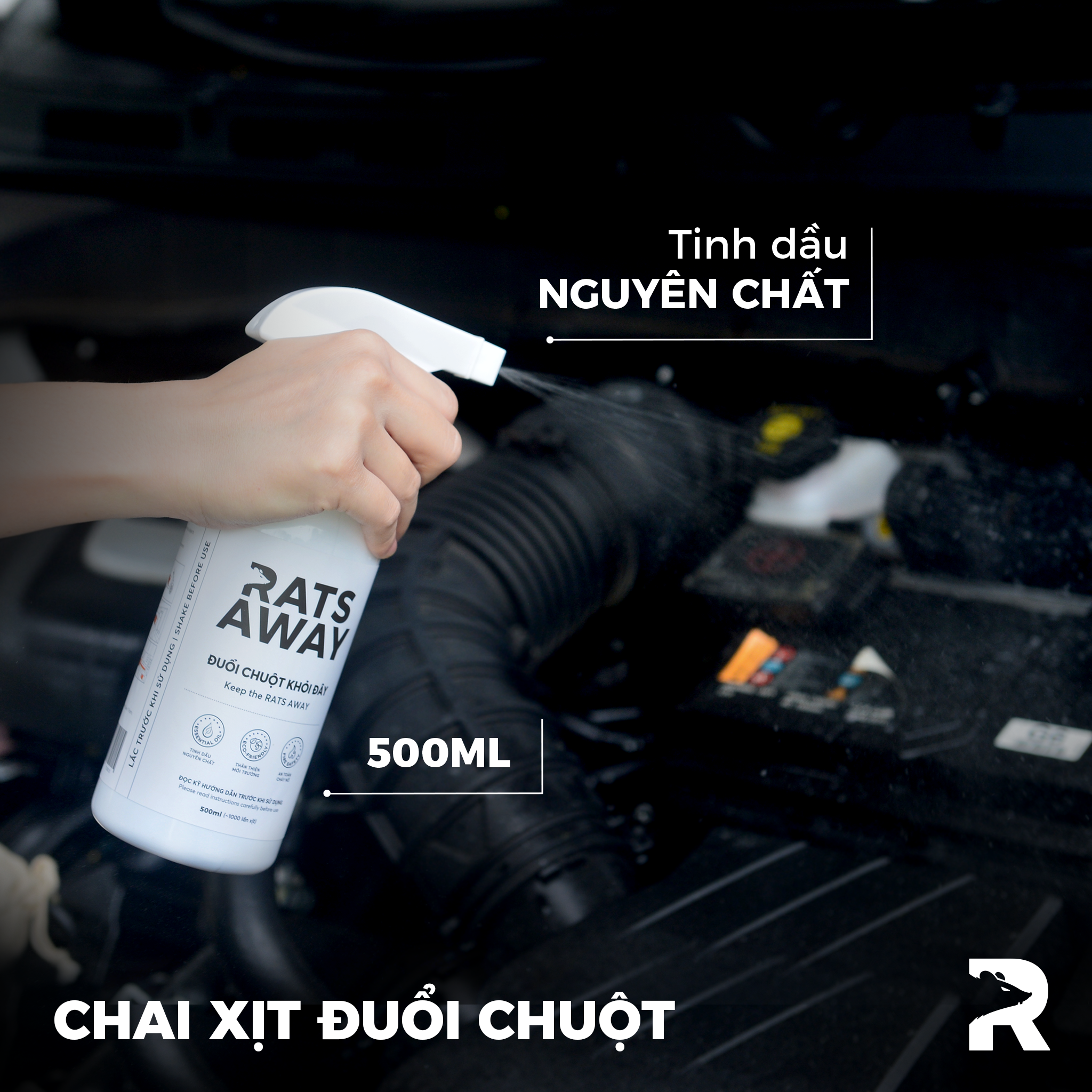 Sau khi treo túi, mỗi tuần 1-2 lần, sử dụng Chai xịt RATS AWAY để xịt vào toàn bộ khoang xe và xịt vào mỗi túi 5-6 lần để tăng khả năng khuếch tán mùi và lưu hương của túi treo lẫn dung dịch trong chai xịt