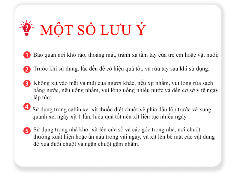 - Có thể đuổi chuột trong nhà bếp, trên trần nhà, ngăn kéo, tủ, -Chuột là loại thuốc xịt chuột đã được đăng ký bởi Cục kiểm soát các chất độc hại Bộ y tế Thailand - Xịt Chuột được chiết xuất từ các chất tự nhiên 100% thuốc trừ sâu, không độc hại, chất lượng và an toàn