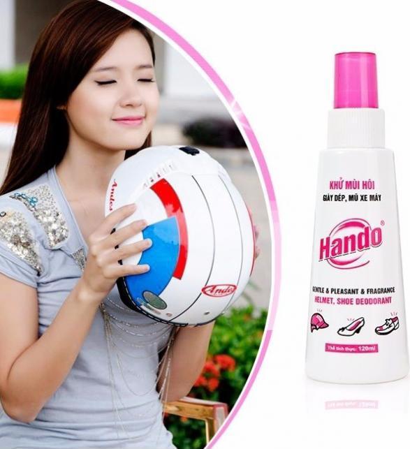 Thông tin sản phẩm Tên sản phẩm : Chai xịt khử mùi giầy, dép, mũ bảo hiểm 120ml Hando Hướng dẫn sử dụng : Xịt vào giày, dép, mũ xe máy trước khi sử