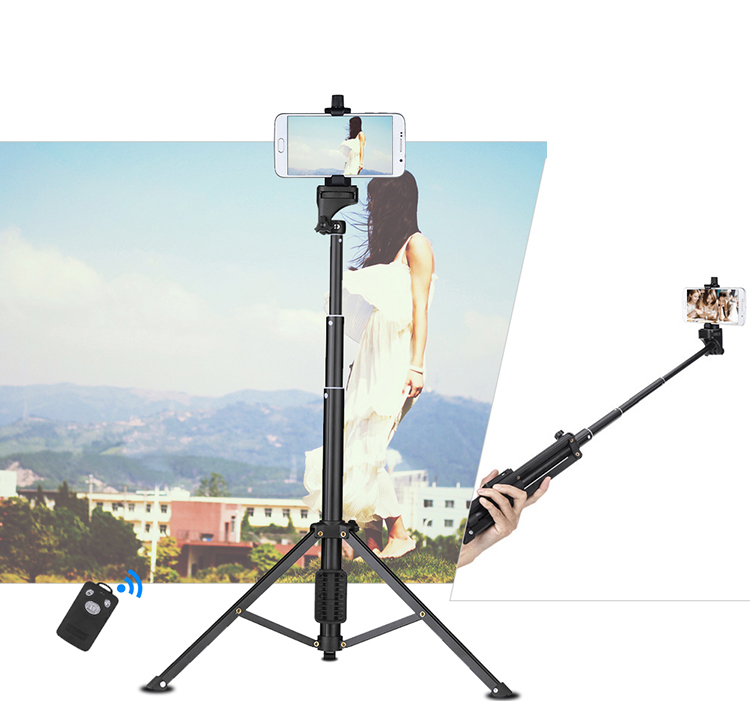 Chân đế quay phim chụp ảnh cho điện thoại kiêm gậy tự sướng bluetooth Yunteng VCT 1688 dùng cho điện thoại và máy ảnh cỡ nhỏ. Chân đế chụp hình điện thoại có thiết kế nhỏ gọn tiện dùng mang theo khi đi chơi, chân có thể kéo dài tối đa lên tới 1.34m, và thu gọn chỉ còn 30cm.