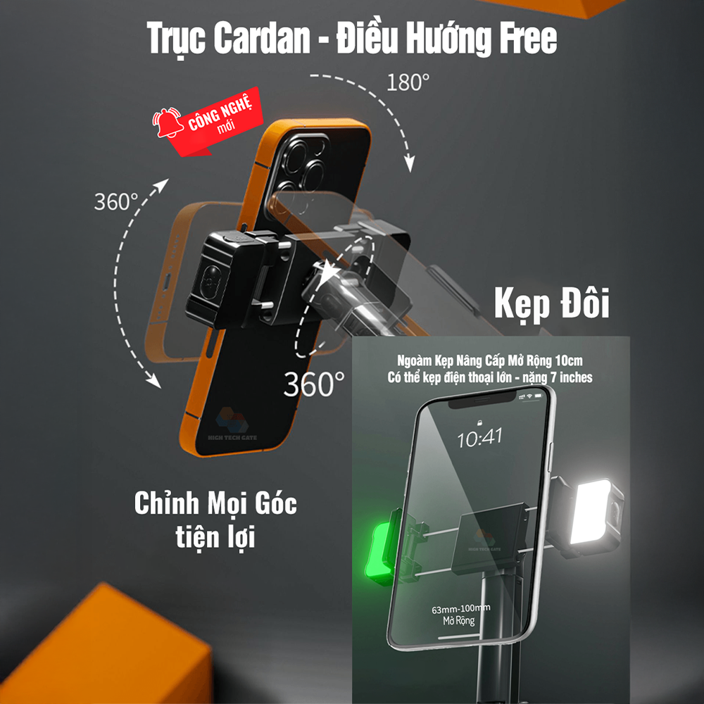 Gậy Chụp Hình Selfie Có Tay Quay Video HTG A36, Chụp Toàn Cảnh 360, Điều Khiển APP NEW, Có 2 Đèn