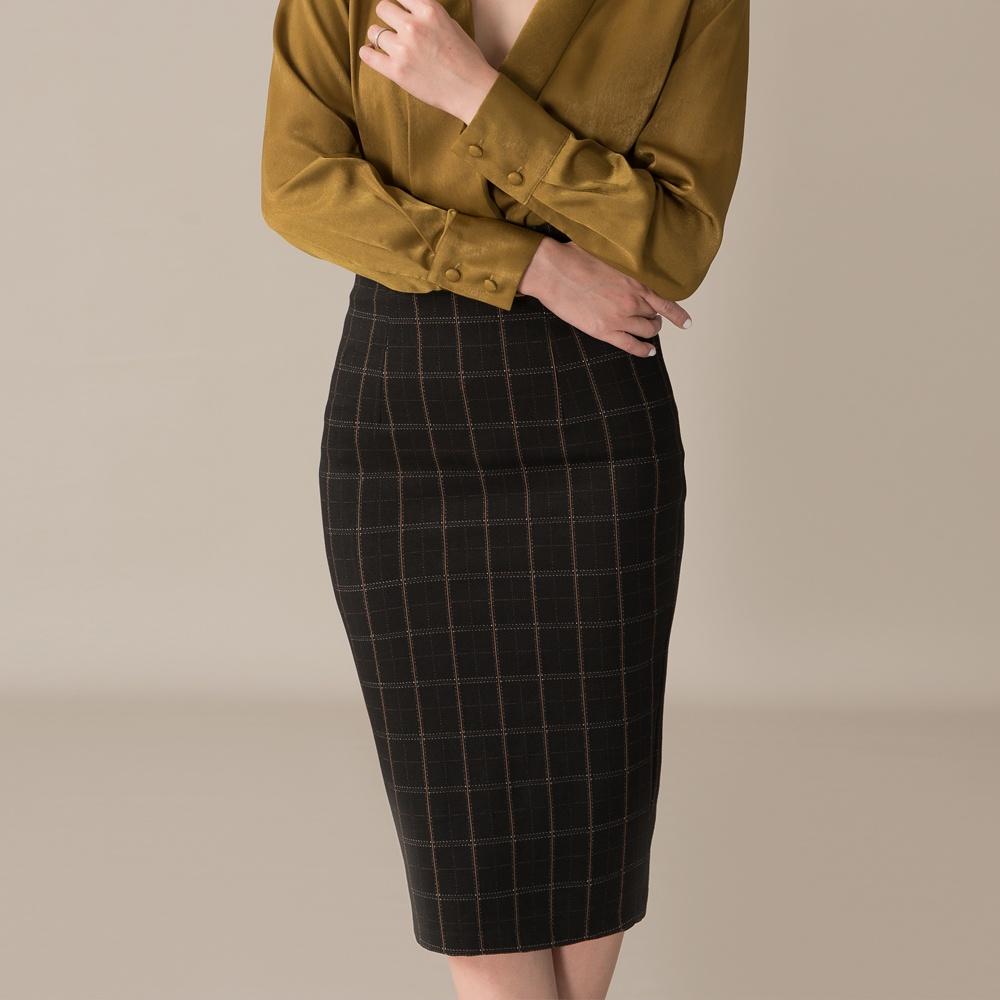 Chân váy bút chì ren họa tiết kẻ ô nâu be thời thượng - AT8B035