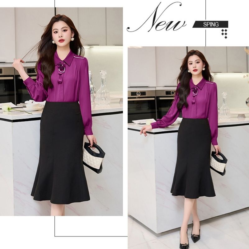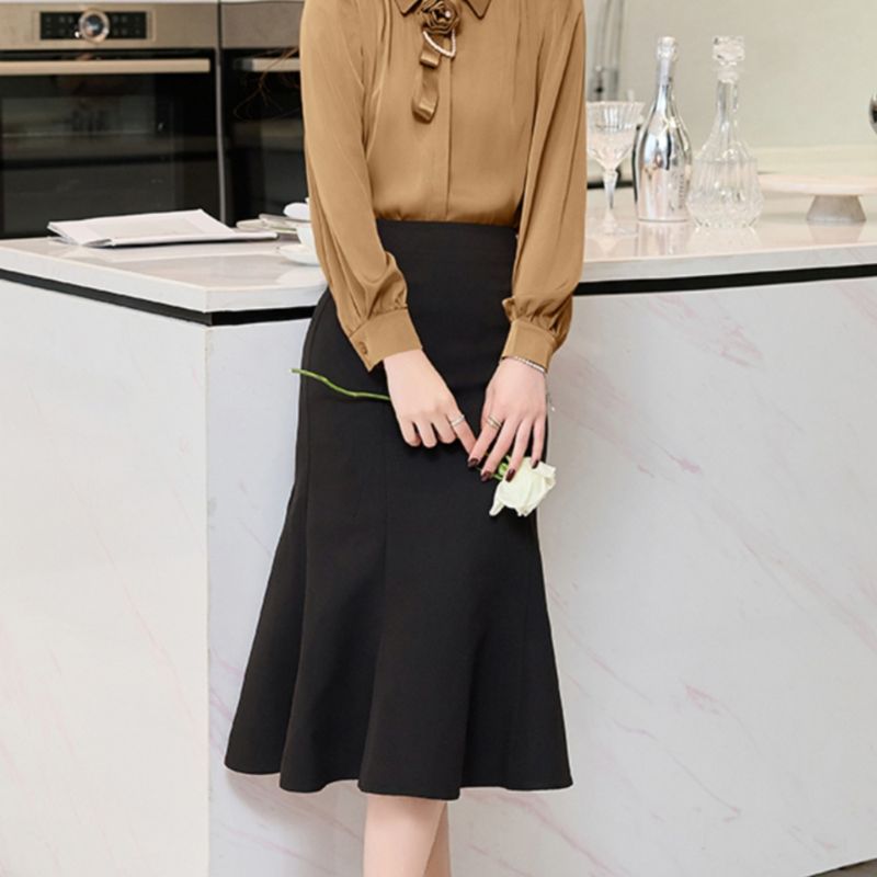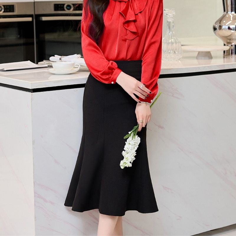 - Chân váy đuôi cá thiết kế lưng cao, phom ôm mông tôn dáng.