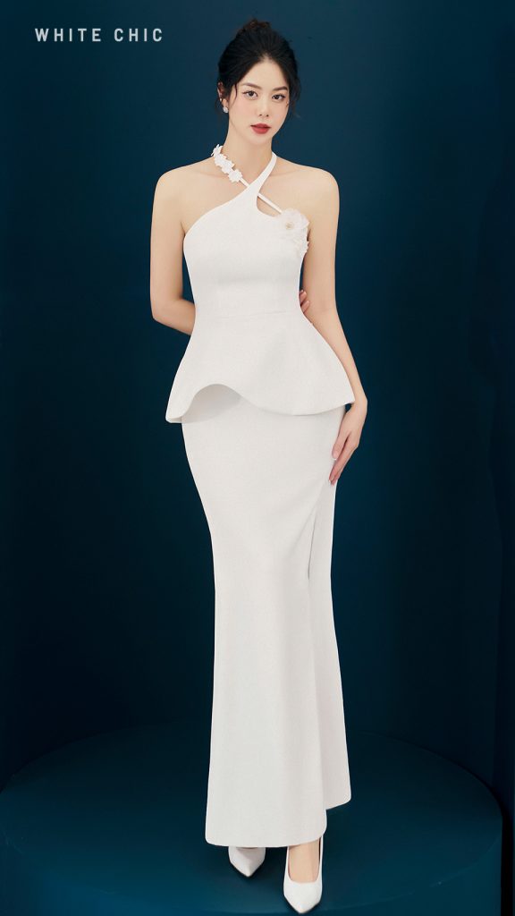 - Thông tin sản phẩm Sự phối hợp nhịp nhàng giữa gam trắng sang trọng và phom đầm đuôi cá quyến rũ đem đến một diện mạo hết mực phóng khoáng cho nàng khi diện lên mình thiết kế xuất sắc này. Chi tiết xẻ tà đắt giá giúp nàng thơ WHITE CHIC tinh tế phô diễn vẻ đẹp kiều diễm, bí ẩn nhưng cũng không kém phần thanh lịch.