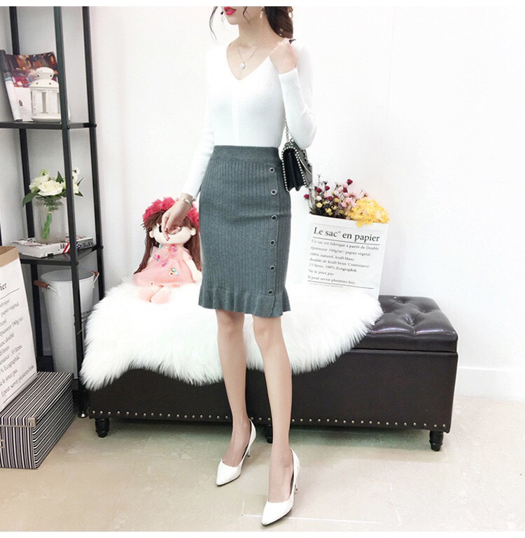 ✨Chân váy nữ,chân váy len đuôi cá phối cúc mẫu mới Cv10