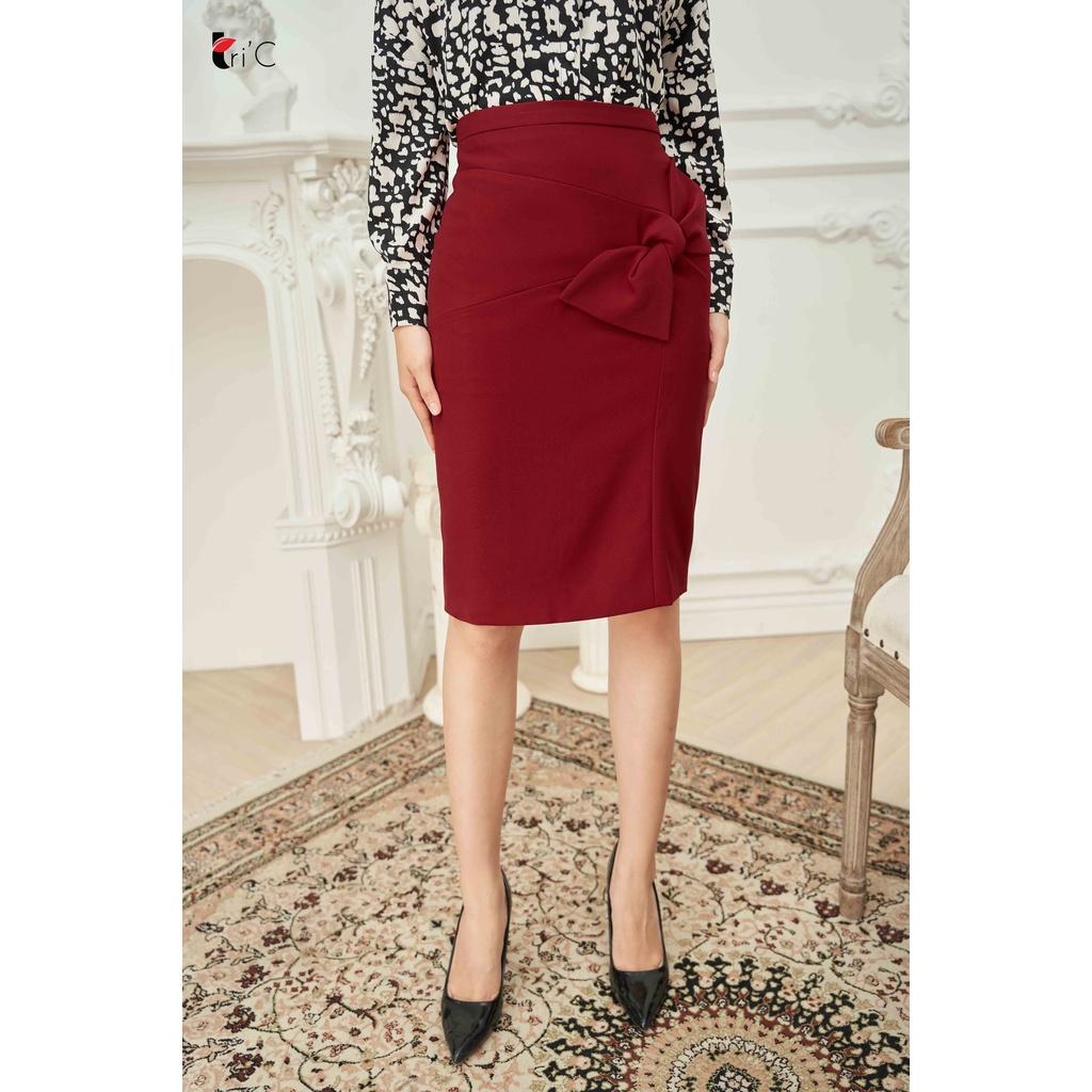 ✨Chân váy ôm, nơ lệch eo Tri'C Luxury C100421 Đỏ