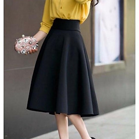 Chân váy xòe dài qua gối thích hợp mặc công sở, dạo phố - Với thiết kế chân váy midi trên nền vải tuyết mưa tinh tế, thích hợp mặc đi làm, dự tiệc hoặc cafe cùng bạn bè. Kiểu dáng basic kết hợp chiều dài qua gối, tạo điểm nhấn cho người mặc, mang đến nét đẹp sang trọng và quyến rũ