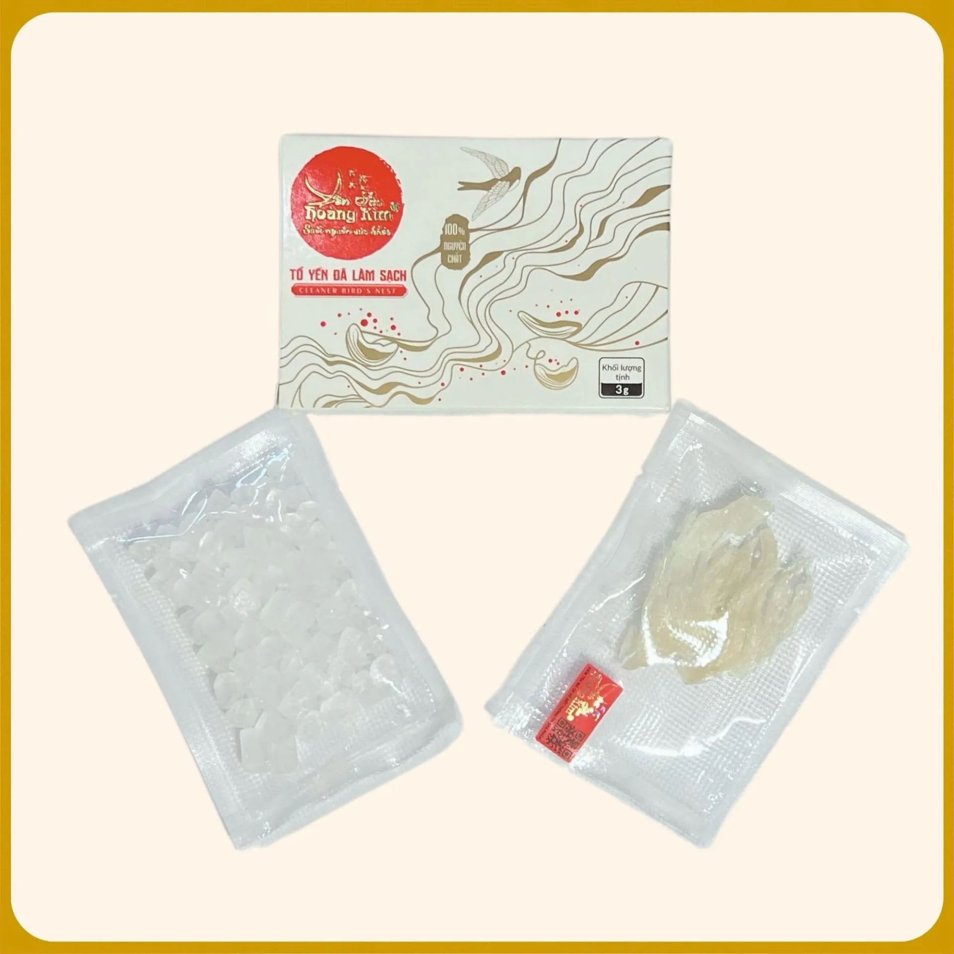 - 100% Yến Nguyên Chất: Sản phẩm là 100% chân tổ yến đã được làm sạch, giữ lại cấu trúc gần như nguyên bản.