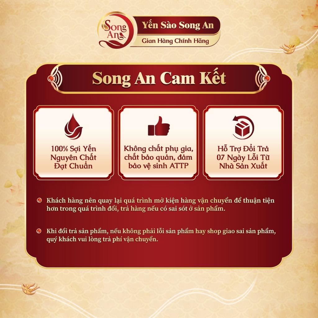 - Song An cam kết sản phẩm 100% yến nguyên chất đạt chuẩn.
