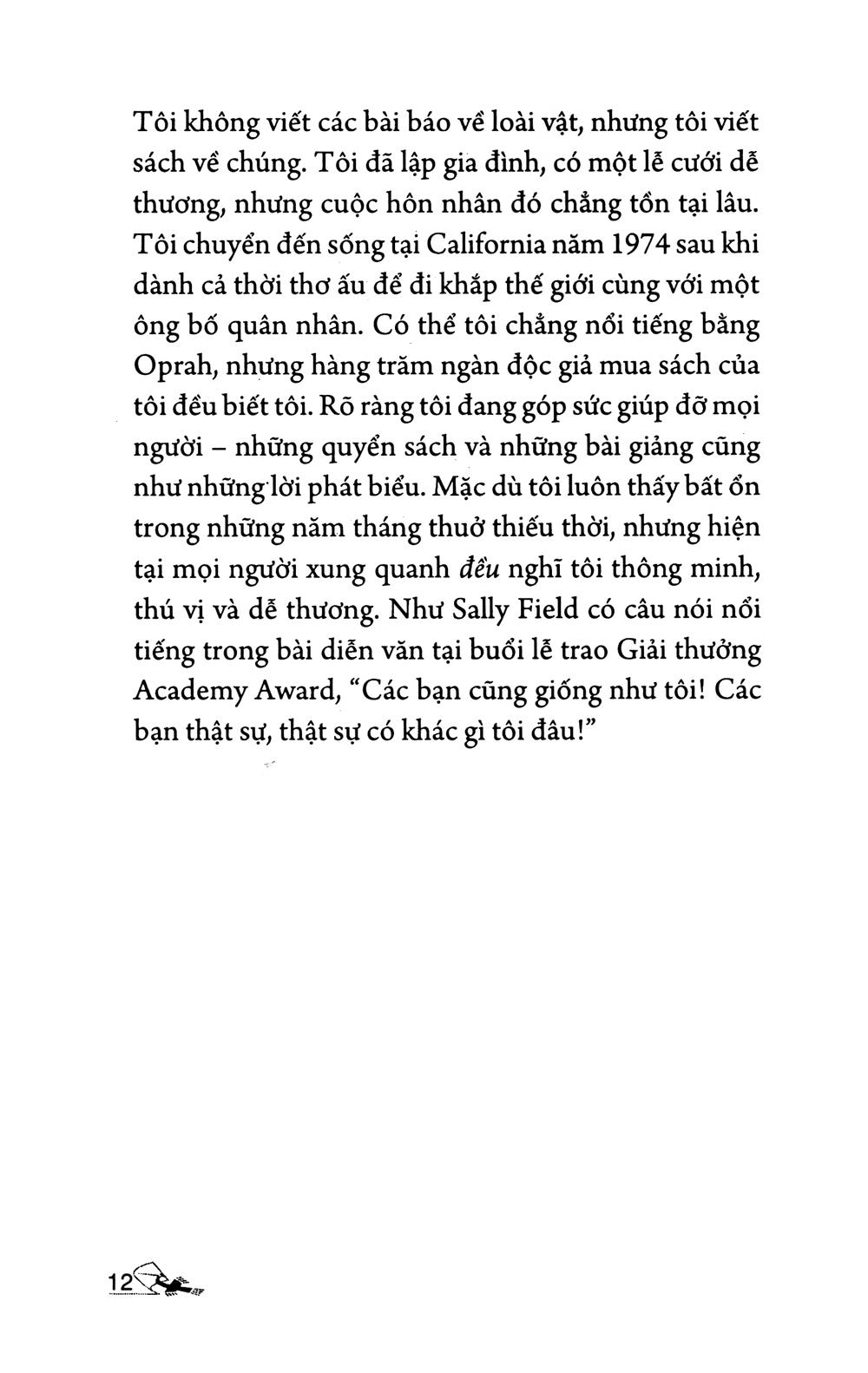 Chẳng Bao Giờ Quá Trễ Để Trở Thành Chính Mình Bạn dạo quanh kiếp này chỉ một lần mà thôi, Vậy tại sao không sống cuộc đời m.ình thích? Hãy bắt đầu ngay từ bây giờ. Hãy sống ngay từ bây giờ. Hãy bày tỏ trọn vẹn bạn thật sự là ai. Bạn có thể tìm thấy tình yêu mới đó, cái tôi mới đó, hay con đường dẫn đến sự giàu sang, phong phú mà bạn đã hằng mơ ước. Cho dù bạn vừa mới thôi việc, mới tốt nghiệp đại học, hay đã vươn đến tầng cấp mà ở đó bạn đang sẵn sàng cho một sự nghiệp bắt đầu lại từ đầu, BJ Gallagher cũng đều đưa ra một sự kết hợp rất hay bao gồm những lời khuyên tuyệt vời, những chỉ dẫn từng bước một, cộng với cảm hứng hoàn toàn. Đừng chỉ nắm bắt cơ hội – hãy nắm bắt cả phần đời còn lại của bạn!