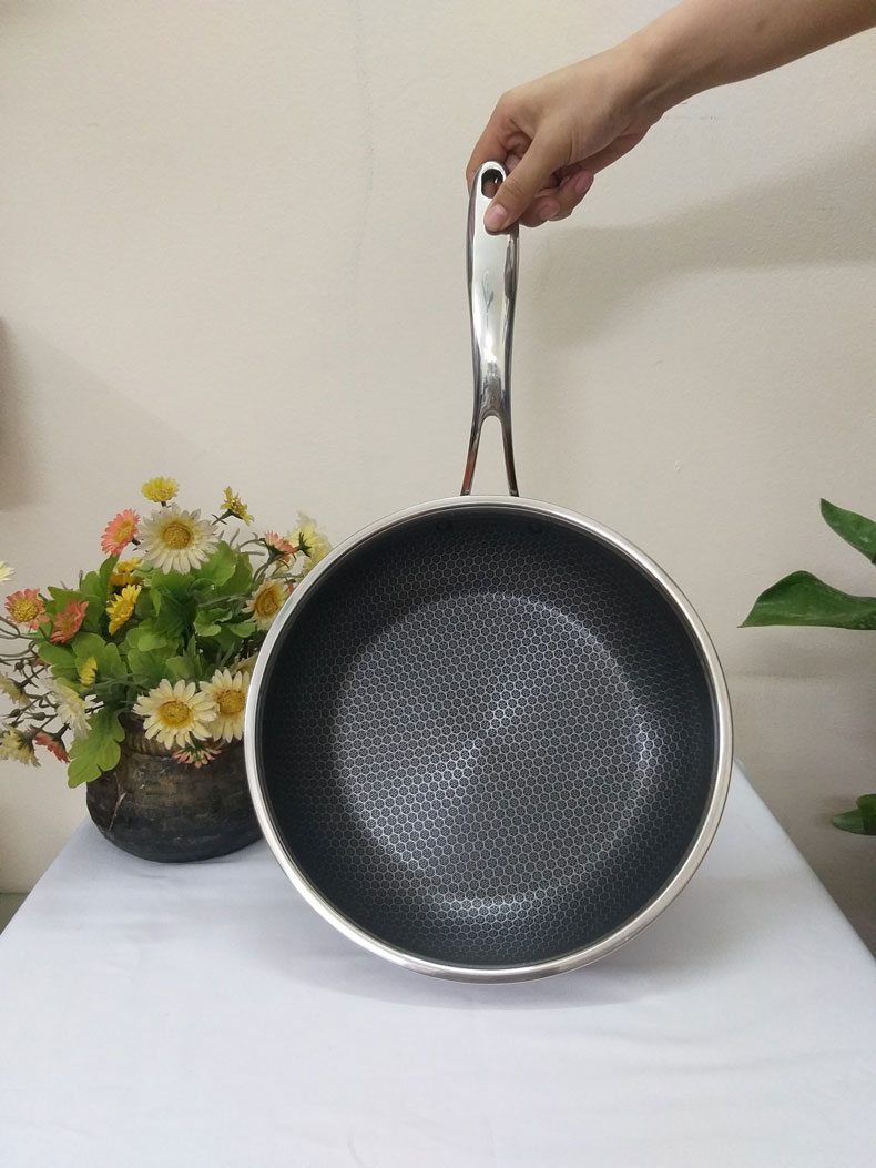 - Chảo inox sáng bóng phủ lớp chống dính siêu bền an toàn cho sức khỏe.