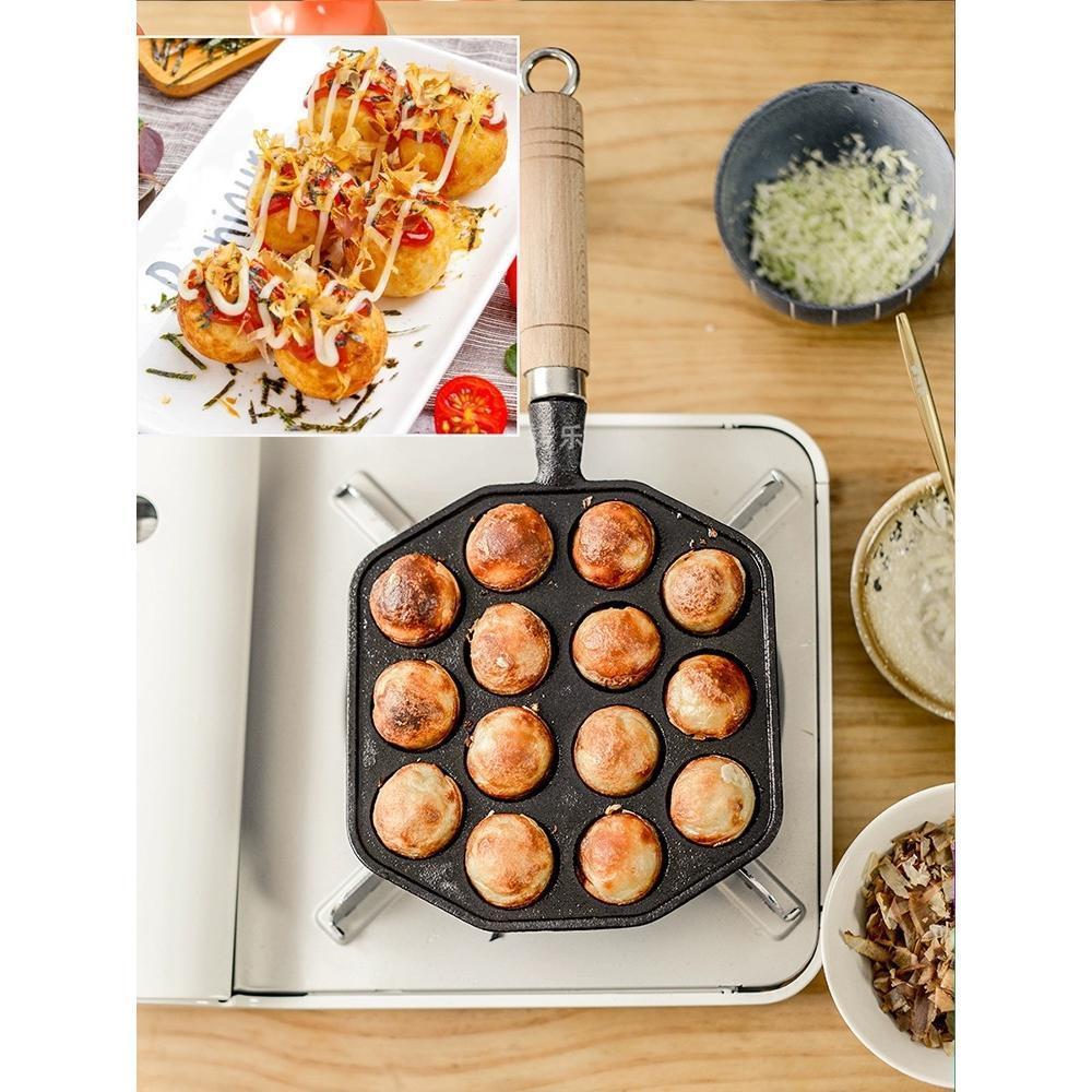✨Chảo Gang Nướng Làm Bánh Takoyaki Nhật Bản 14 Lỗ Gang Đúc Nguyên Khối