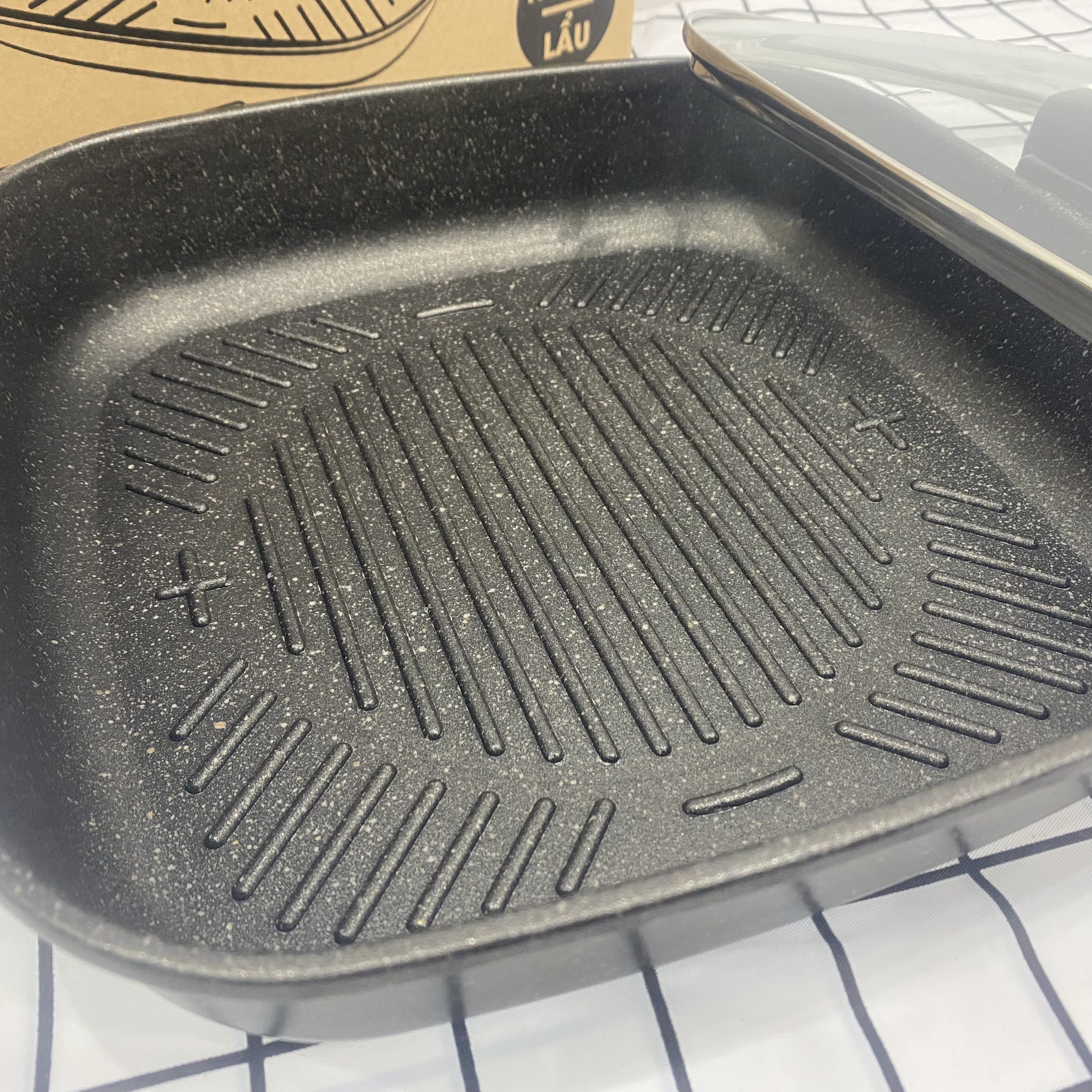 - Thiết kế nhiều rãnh trên bề mặt, giúp hạn chế lượng dầu, mỡ khi chế biến thức ăn đồng thời tạo viền đẹp mắt, tinh tế.