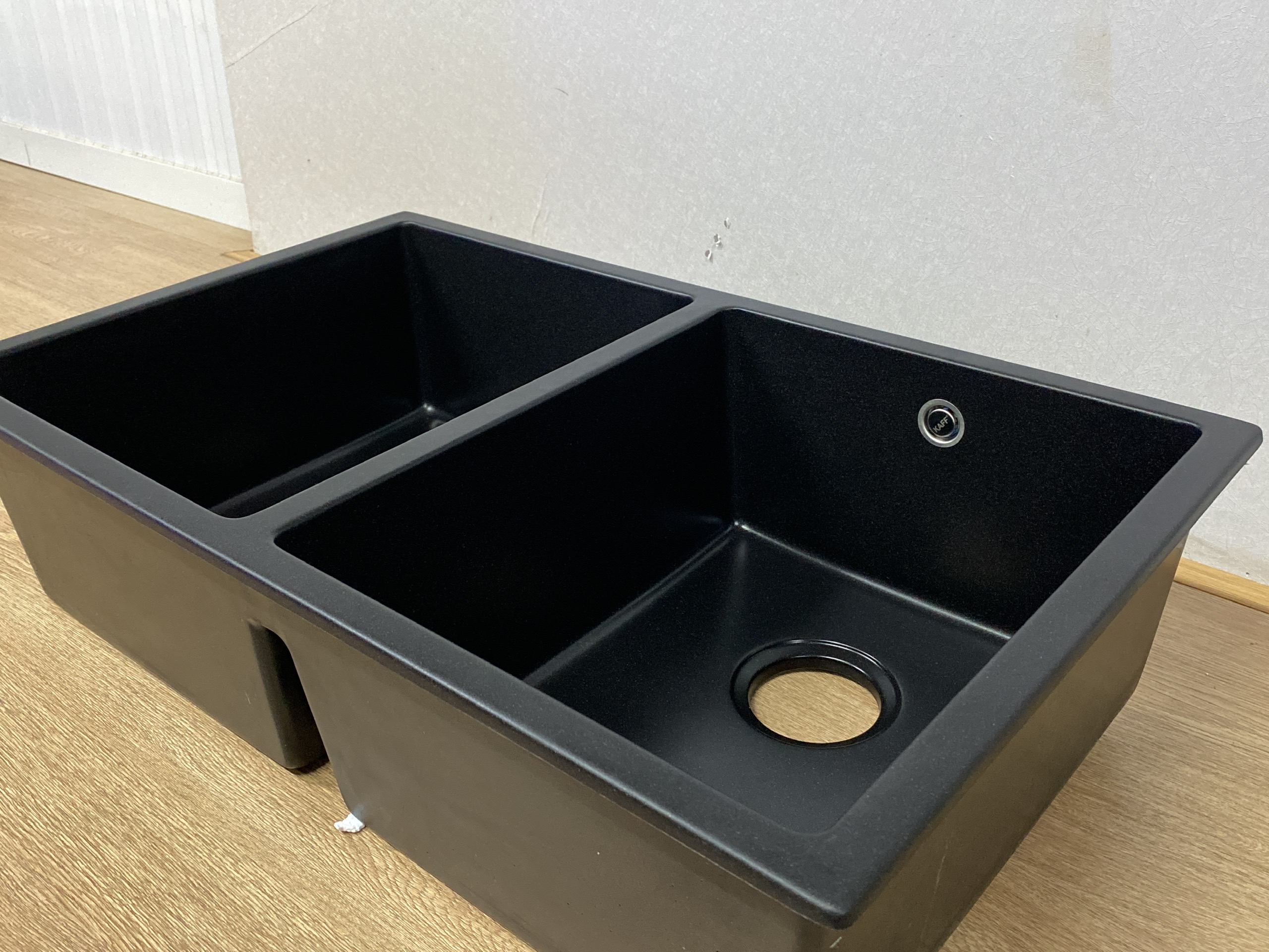 MÃ SẢN PHẨM: VELOCI 760D Thông tin sản phẩm Kích thước (mm): 760*435*200 Kích thước hố(mm): 343*395; 343*395 Cắt đá lắp âm (mm): Chất liệu: Granite Phụ kiện: Siphon + Giá úp bát inox