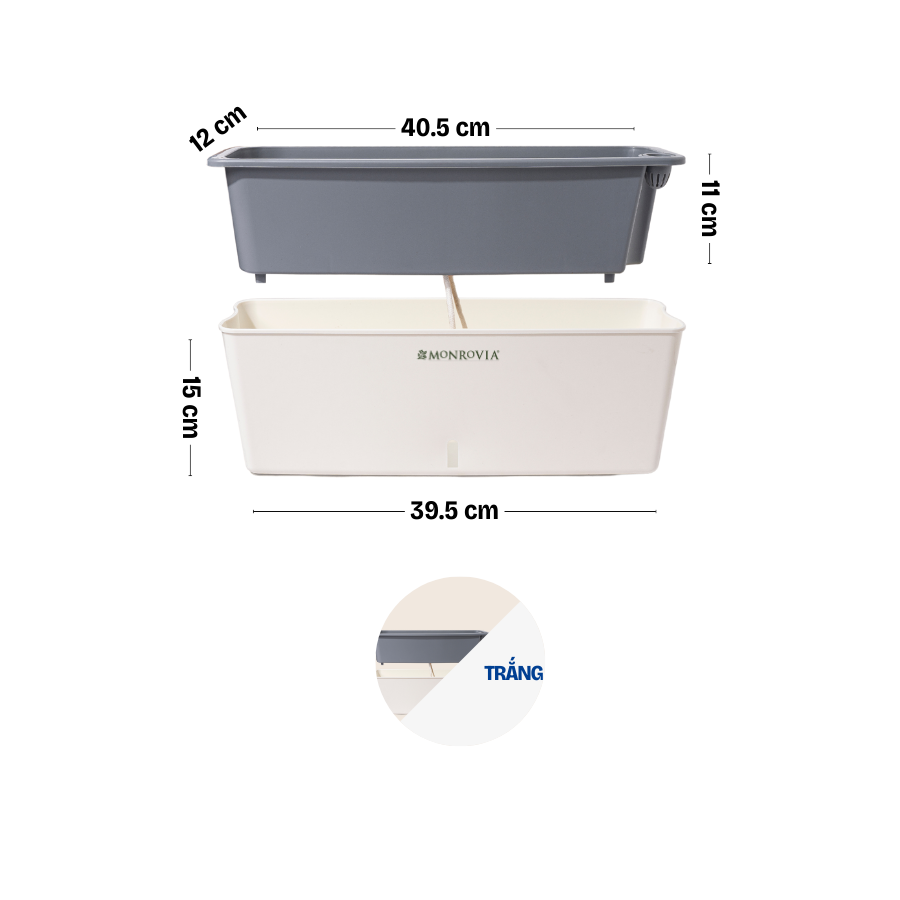 DOCNEEM XIN GIỚI THIỆU ĐẾN BẠN MÃ SẢN PHẨM - CHẬU TRỒNG CÂY TỰ TƯỚI THÔNG MINH HÌNH CHỮ NHẬT MONROVIA SC06 Chất liệu: PP cao cấp Cấu tạo: Chậu bao gồm hai lớp chậu