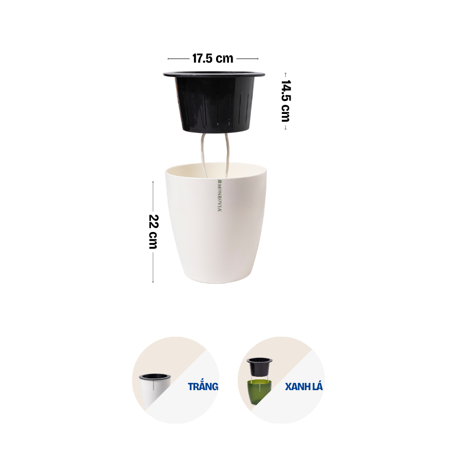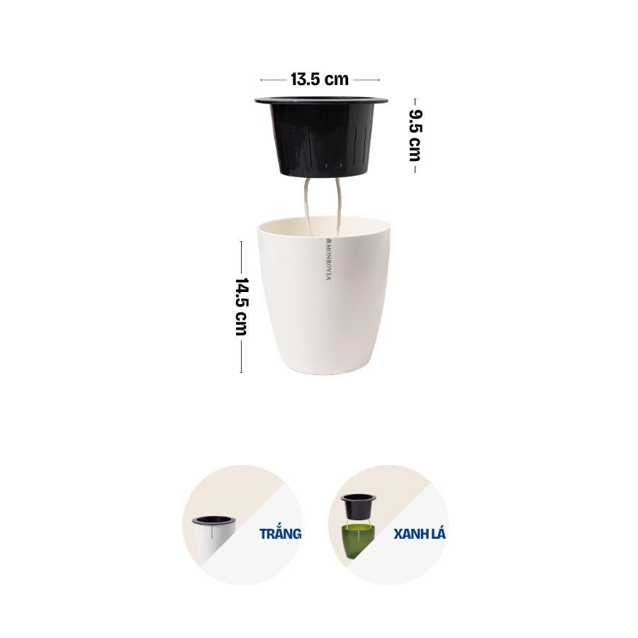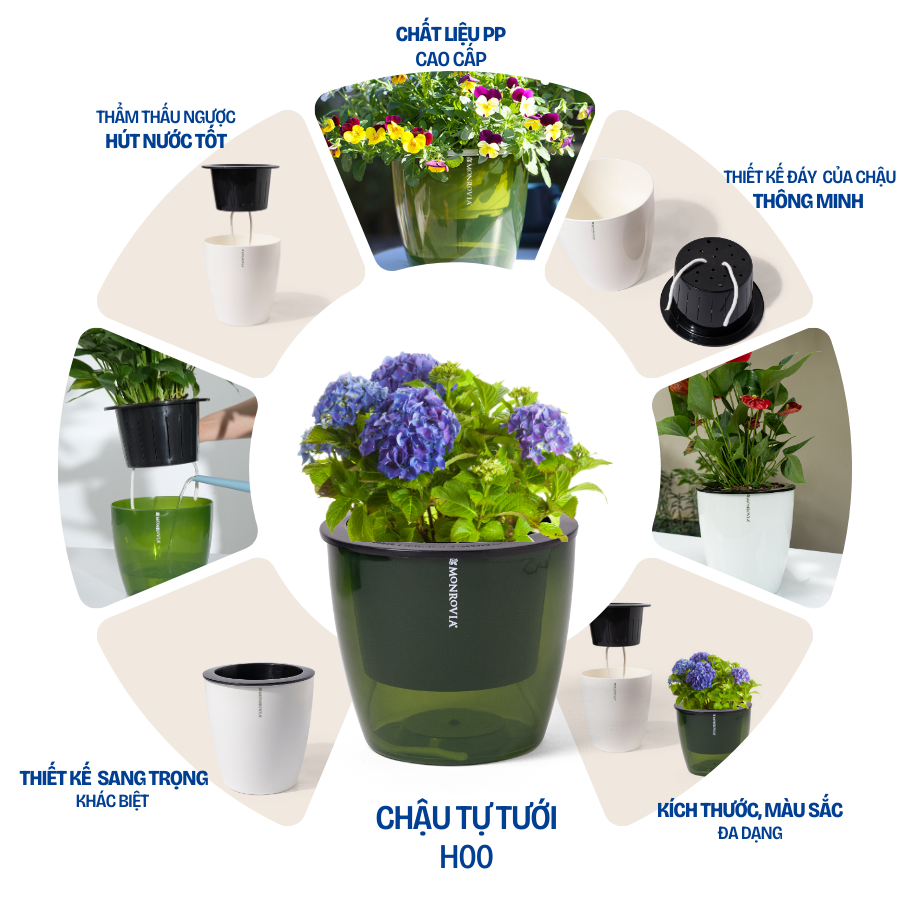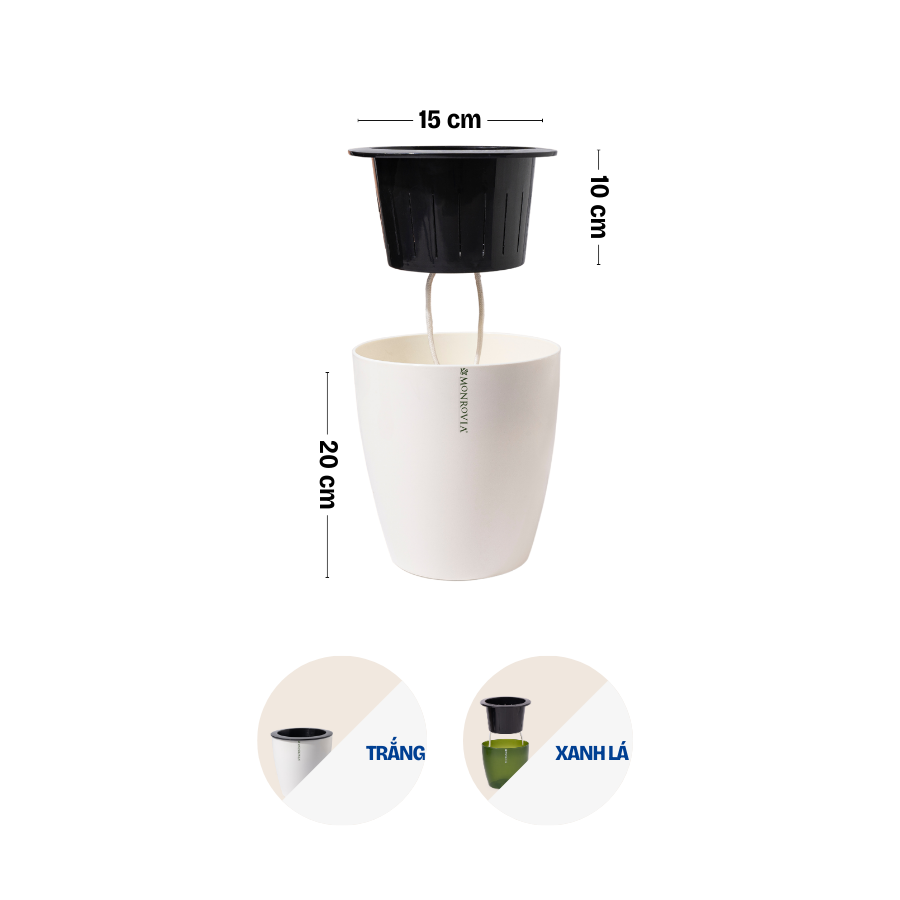 DOCNEEM XIN GIỚI THIỆU ĐẾN BẠN MÃ SẢN PHẨM - CHẬU TRỒNG CÂY TỰ TƯỚI THÔNG MINH MONROVIA H0 _ Chất liệu: PP cao cấp _ Cấu tạo: Chậu bao gồm hai lớp chậu *