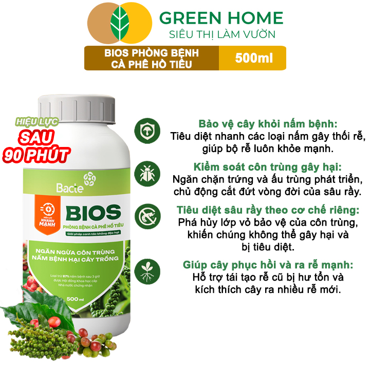 ✨Chế Phẩm Sinh Học Bacte Bios Phòng Bệnh Cà Phê Hồ Tiêu, Green Home, Chai 500ml, Hiệu Lực Nhanh Mạnh