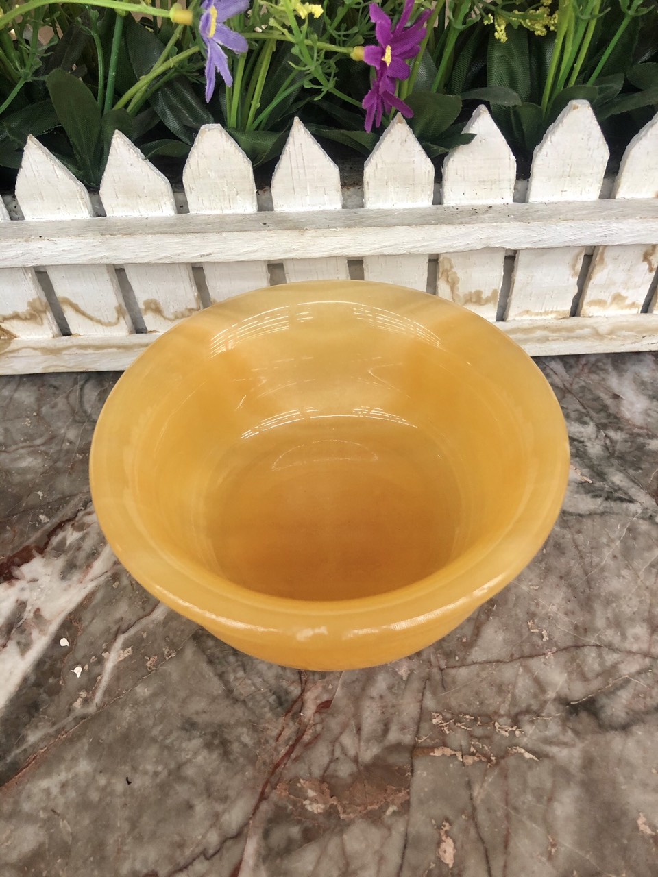 Chất liệu: Đá ngọc hoàng long Kích thước: Đường kính 10,5cm; Cao 4cm; Sâu 2,7cm Khối lượng: 260g