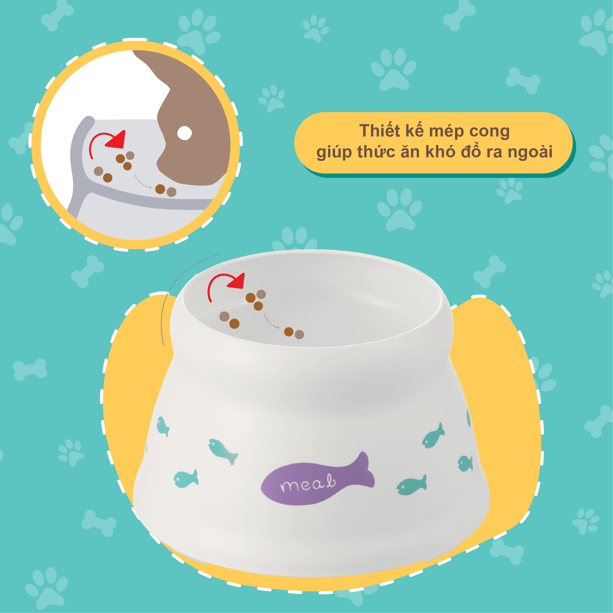 Chén ăn được thiết kế với mép cong thông minh, giúp hạn chế thức ăn rơi vãi ra ngoài khi thú cưng ăn uống. Thiết kế này không chỉ giữ vệ sinh cho không gian sống mà còn giúp thú cưng ăn gọn gàng hơn, đặc biệt phù hợp với các bé mèo và chó nhỏ năng động.