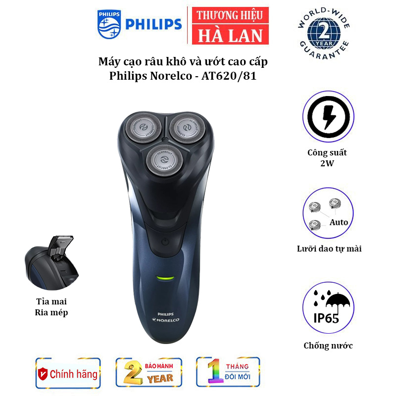 Máy cạo râu khô và ướt Philips Norelco AT620/81 Công suất: 2W - HÀNG NHẬP KHẨU - Với máy cạo râu Philips Norelco AT620/81 bạn có thể hưởng thụ cảm giác khoan khoái khi cạo râu mà