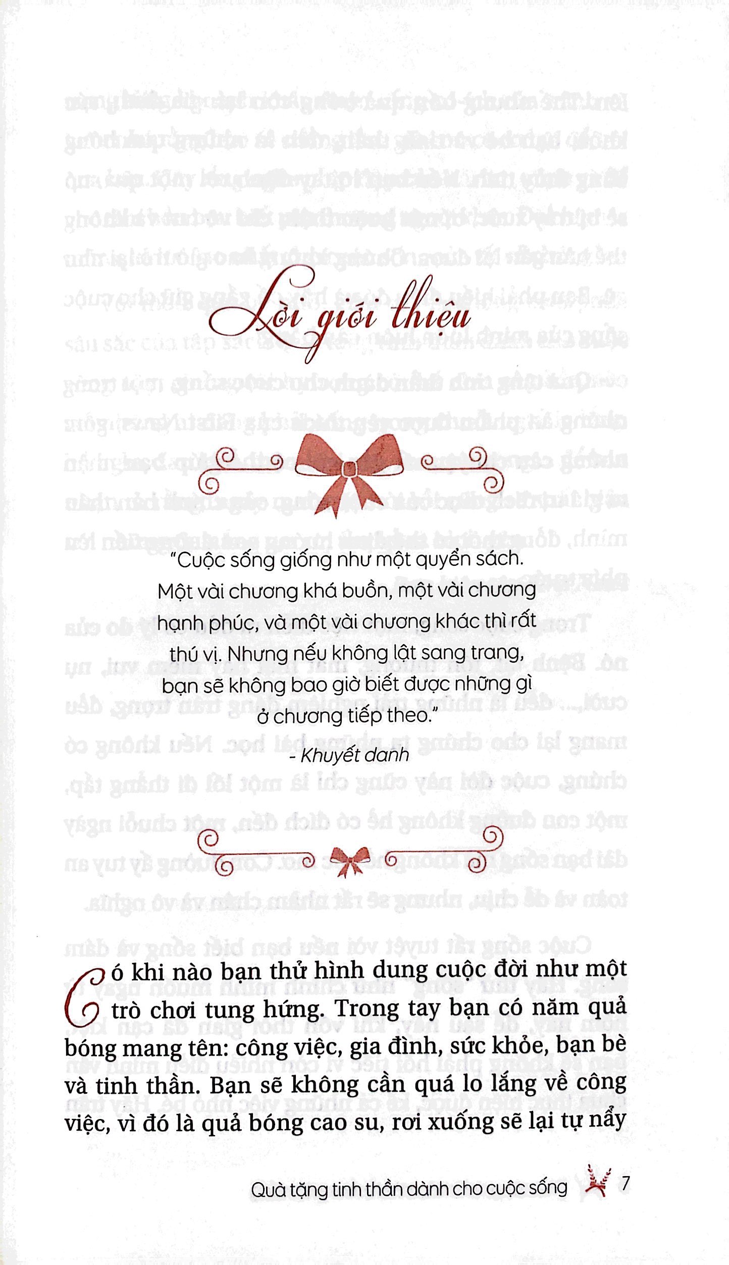 Với những “món quà” bé nhỏ, giản dị mà không kém phần sâu sắc trong Quà tặng Tinh thần cho Cuộc sống, chúng tôi hy vọng có thể đồng cảm, chia sẻ với những ai đang phải sống trong chuỗi ngày lo lắng, hồ nghi, khổ đau, thậm chí rơi vào tuyệt vọng… để bạn nhận ra rằng, ngày mai mặt trời rồi cũng sẽ xuất hiện với những tia nắng rực rỡ, ấm áp và bình yên.