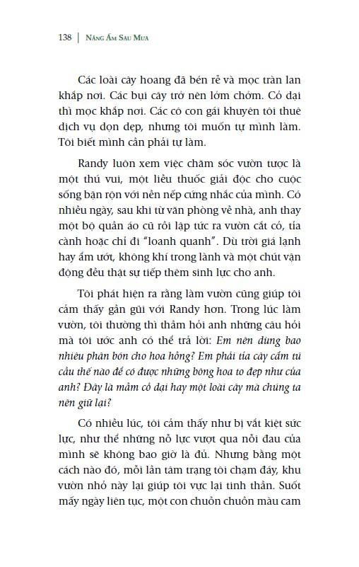 Chicken Soup For The Soul - Nắng Ấm Sau Mưa Mỗi câu chuyện, như một sắc màu, lại chuyển tải một thông điệp khác nhau, cho chúng ta cơ hội chiêm nghiệm những cung bậc và sắc màu đa dạng của cuộc sống. Dù là bài ca về tình đôi lứa, nghĩa vợ chồng hay khúc hát về tình mẫu tử, thì những câu chuyện nhỏ này cũng gửi gắm đến ta thông điệp về ý nghĩa và sức mạnh của tình yêu thương. Ở một thời điểm nào đó, khi đang chìm trong màu xám xịt tối tăm của lo lắng, tuyệt vọng thì chỉ cần một ánh mắt đồng cảm, một nụ cười thân ái hay một cái xiết tay khích lệ cũng đủ để ta đứng thẳng dậy, dũng cảm bước qua những tháng ngày tăm tối, tìm lại ánh dương tươi sáng cho cuộc đời m.ình. Có thể nói, cuộc sống - với tất cả những khổ đau và hạnh phúc, nước mắt và nụ cười, chia ly và sum họ không ngừng khiến trái tim ta thổn thức. Nhưng vượt qua mọi nỗi sợ hãi và bi quan, tận sâu trong trái tim m.ình, mỗi chúng ta đều giữ lại những sắc hồng ấm áp làm nên ý nghĩa của cuộc đời m.ình. "Những khó khăn thử thách không phải là hòn đá cản bước bạn trên đường đi. Chúng có thể trở thành những phiến đá để bạn bước cao hơn hay không là tùy thuộc ở chính bạn."