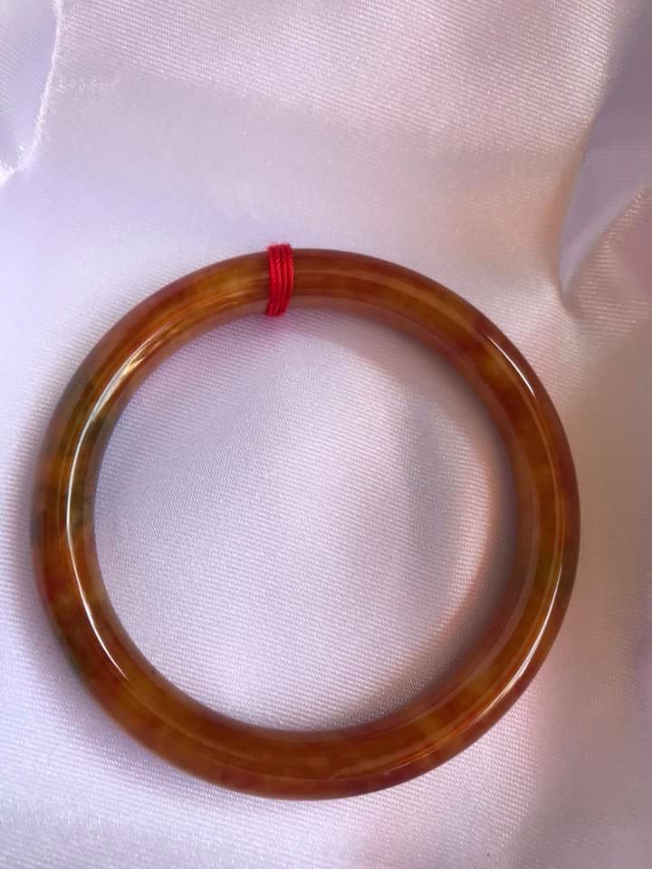 💕💦💕Vòng cẩm thạch Tứ Quý đẹp 51mm xdầy 7,5mm Màu Cam Bông Xíu Xanh Nhẹ bóng đẹp lắm 50kg-56kg480k
