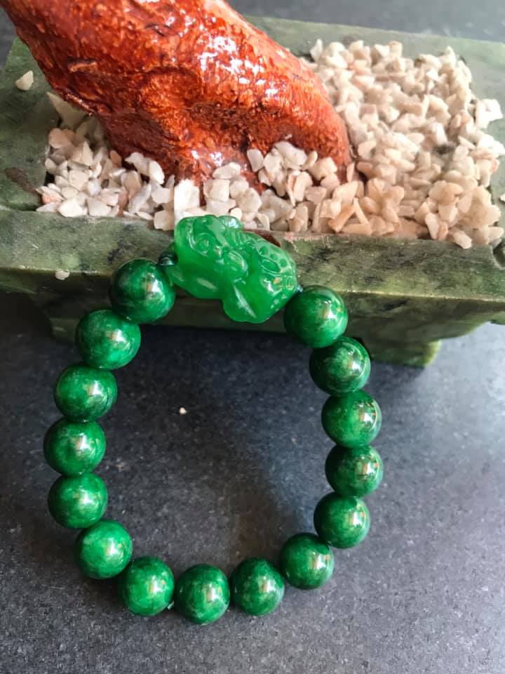 ✨CHIẾC VÒNG TAY TỲ HƯU NỮ ĐÁ CẨM THẠCH MÀU XANH LÁ SIZE 10MM NỮ MỆNH MỘC VÀ HỎA Ạ