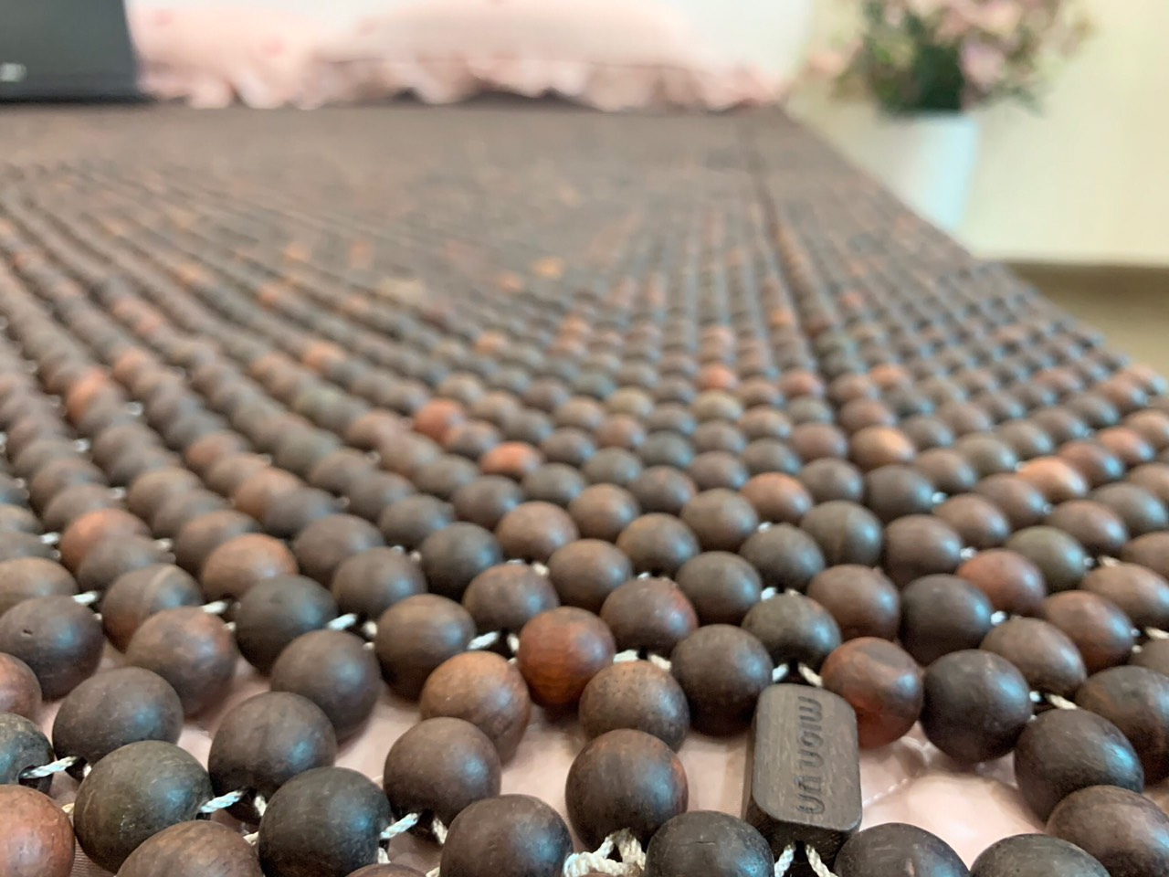 CHIẾU HẠT GỖ TRẮC MỘC CAO CẤP ( ) : - Chất liệu : 100% gỗ Trắc tự nhiên - Kích thước chiếu : 1,2mx1,9m - Kích thước hạt : 1,2cm ( kích thước hạt