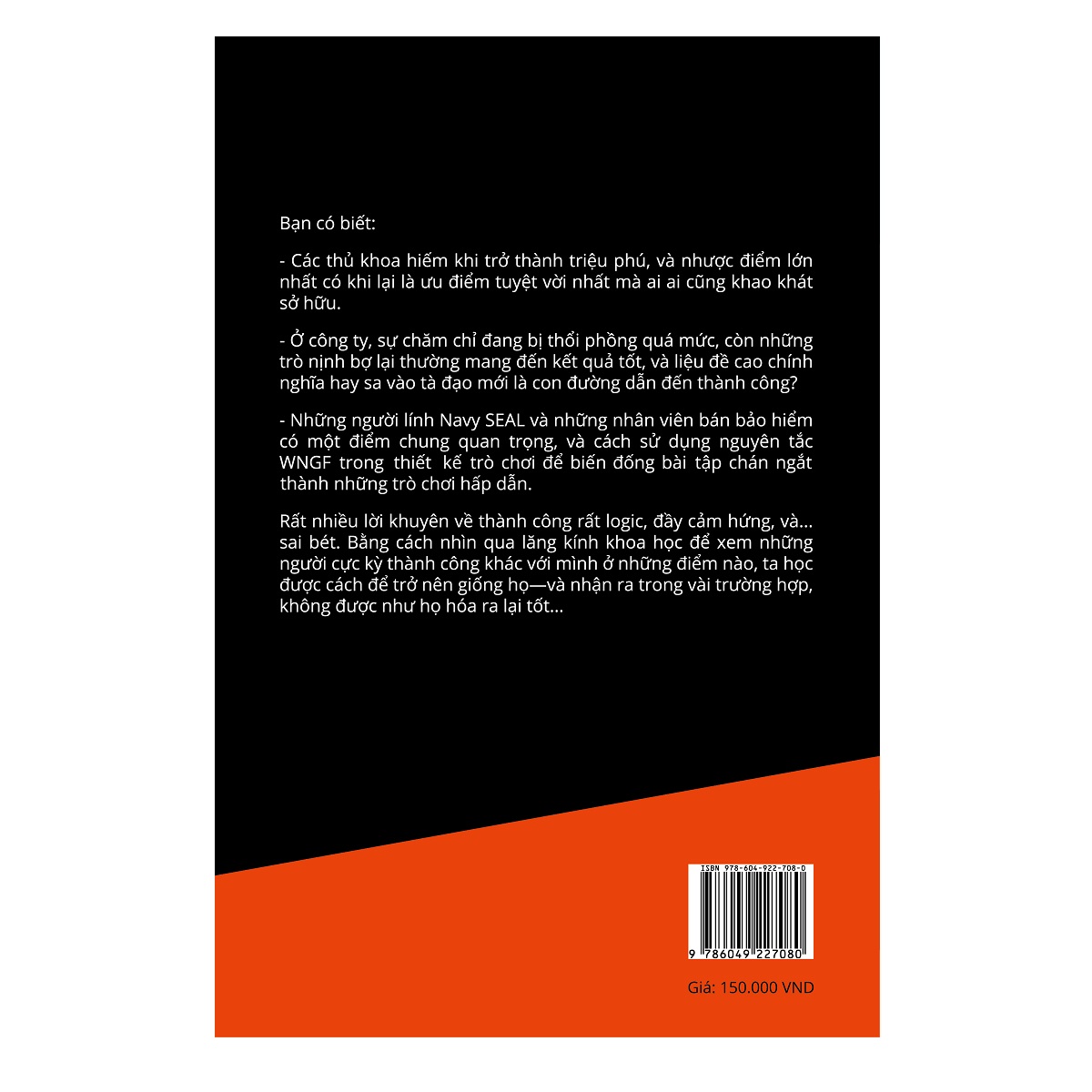 - Những người lính Navy SEAL và những nhân viên bán bảo hiểm có một điểm chung quan trọng, và cách sử dụng nguyên tắc WNGF trong thiết kế trò chơi để biến đống bài tập chán ngắt thành những trò chơi hấp dẫn. Rất nhiều lời khuyên về thành công rất logic, đầy cảm hứng, và sai bét. Bằng cách nhìn qua lăng kính khoa học để xem những người cực kỳ thành công khác với mình ở những điểm nào, ta học được cách để trở nên giống họ—và nhận ra trong vài trường hợp, không được như họ hóa ra lại tốt hơn. CHÓ SỦA NHẦM CÂY - BARKING UP THE WRONG TREE - là quyển sách gây tiếng vang, liên tục nằm trong danh sách bestseller Amazon của tác giả kiêm chủ trang blog Barking up the wrong tree - Eric Barker. Xuyên suốt nội dung sách, Eric sẽ cùng chúng ta lý giải một cách đầy hóm hỉnh nhưng không kém phần chặt chẽ những quan niệm khác nhau về thành công từ trước đến nay. Và ở cuối con đường đó, mỗi người chúng ta sẽ tự tìm thấy ngưỡng cửa thành công cho riêng mình.