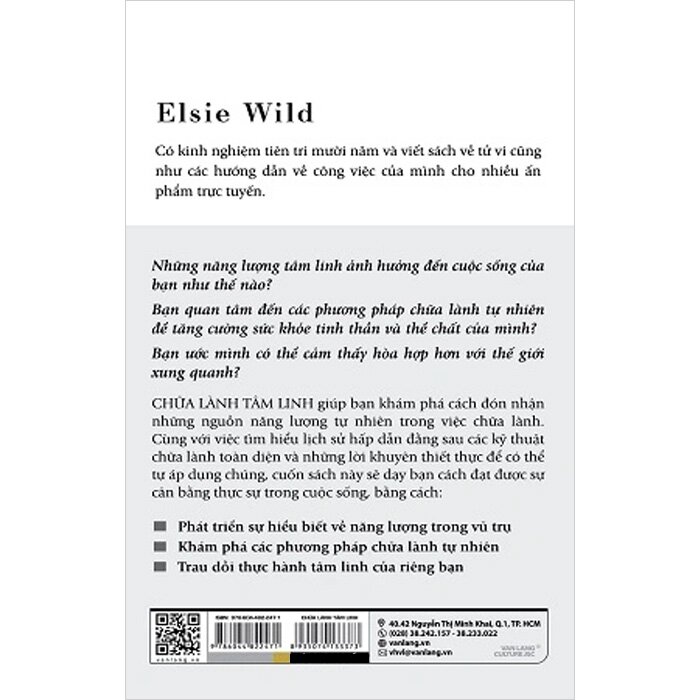Chữa Lành Tâm Linh Elsie Wild có kinh nghiệm tiên tri mười năm và viết sách về tử vi cũng như các hướng dẫn về công việc của mình cho nhiều ấn phẩm trực tuyến. Những năng lượng tâm linh ảnh hưởng đến cuộc sống của bạn như thế nào? Bạn quan tâm đến các phương pháp chữa lành tự nhiên để tăng cường sức khỏe tinh thần và thể chất của mình? Bạn ước mình có thể cảm thấy hòa hợp hơn với thế giới xung quanh? CHỮA LÀNH T M LINH giúp bạn khám phá cách đón nhận những nguồn năng lượng tự nhiên trong việc chữa lành. Cùng với việc tìm hiểu lịch sử hấp dẫn đằng sau các kỹ thuật chữa lành toàn diện và những lời khuyên thiết thực để có thể tự áp dụng chúng, cuốn sách này sẽ dạy bạn cách đạt được sự cân bằng thực sự trong cuộc sống, bằng cách:
