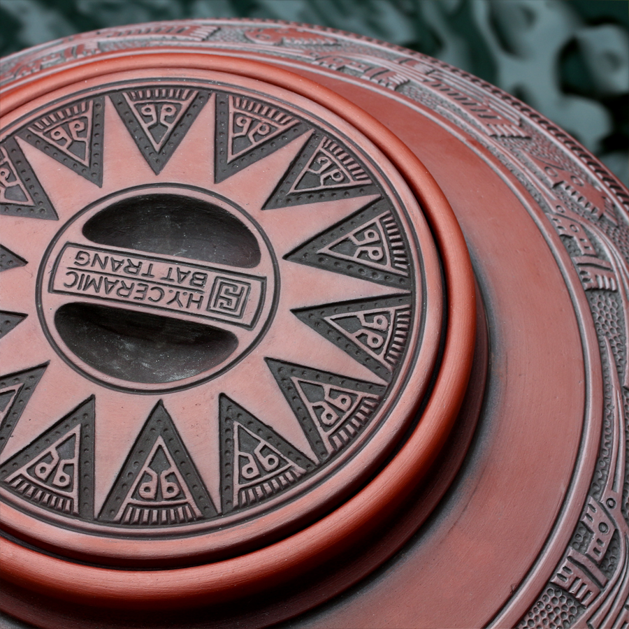 Lần đầu tiên hình ảnh trống đồng được tái hiện trên chiếc chum sành độc đáo.Họa tiết đắp nổi tỉ mỉ, công phu bởi nghệ nhân Bát Tràng.Thiết kế đặc biệt với 2 lớp nắp đậy, giúp cho việc sử dụng trở l...