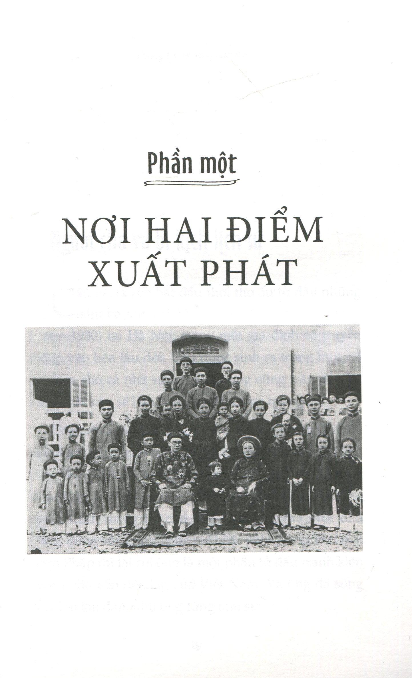 Tác phẩm được chia làm 6 phần. Phần đầu tiên có nhan đề Nơi hai điểm xuất phát viết về xuất thân gia đình của hai người, tuy nhiên do gia đình bà Tuyết khá bình dị nên chủ yếu của phần này dành để nhắc đến gia thế nhạc sĩ Phạm Tuyên. Ở phần này tuy nhắc khá nhiều đến ông Phạm Quỳnh, thân sinh nhạc sĩ Phạm Tuyên, một nhân vật lịch sử nhưng đa số đều là các tư liệu đã công bố, hầu như không có chi tiết nào mới lạ ngoại trừ các chi tiết trong nội bộ gia đình như cách thức chăm sóc con cái, đánh giá của Phạm Quỳnh về những đứa con...