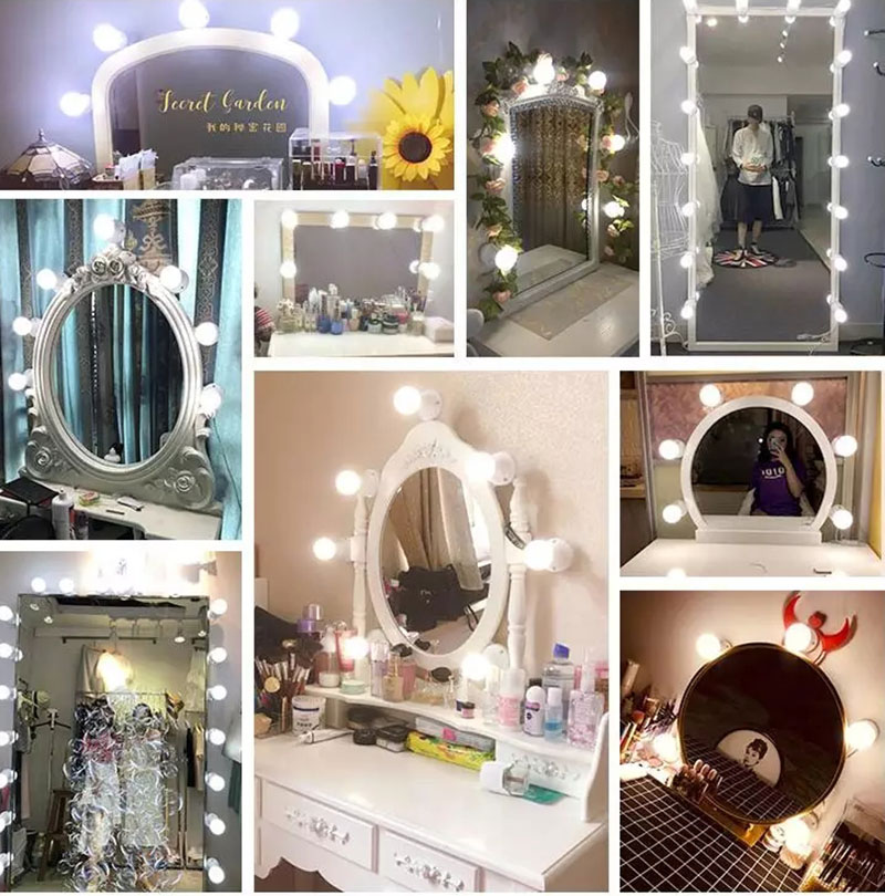 Chuỗi dây đèn led được áp dụng để trang điểm, lấp đầy ánh sáng, trang trí và chụp ảnh thêm lung linh sắc màu. Những thiết bị chiếu sáng LED vanity hoàn hảo cho phòng tắm, phòng thay đồ, văn phòng, nơi làm việc, nhà hàng và khách sạn.  Được trang bị các băng keo bọt, dán bóng đèn vanity trực tiếp lên gương, khung gương dễ dàng, cắm bộ chuyển đổi,sau đó tận hưởng thời gian trang điểm của bạn.