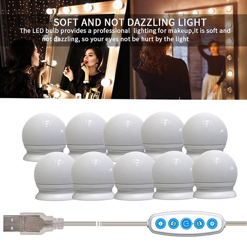 10 bóng đèn LED tạo ra ánh sáng mềm mại và tươi sáng. Cung cấp một ánh sáng màu chính xác chuyên nghiệp cho trang điểm. Đèn chiếu sáng toàn bộ căn phòng của bạn.Các bóng đèn gương vanity LED phù hợp c...