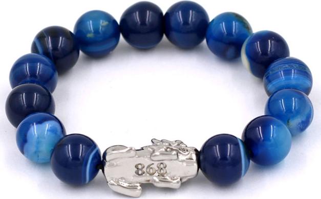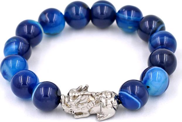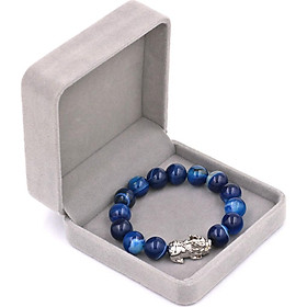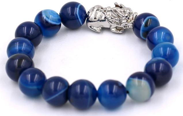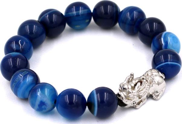 ✨Chuỗi đeo tay thạch anh xanh dương sọc 12 ly - cẩn Tỳ Hưu inox VTAXDSTHT12 - kèm hộp nhung - hợp mệnh Mộc, mệnh Thủy
