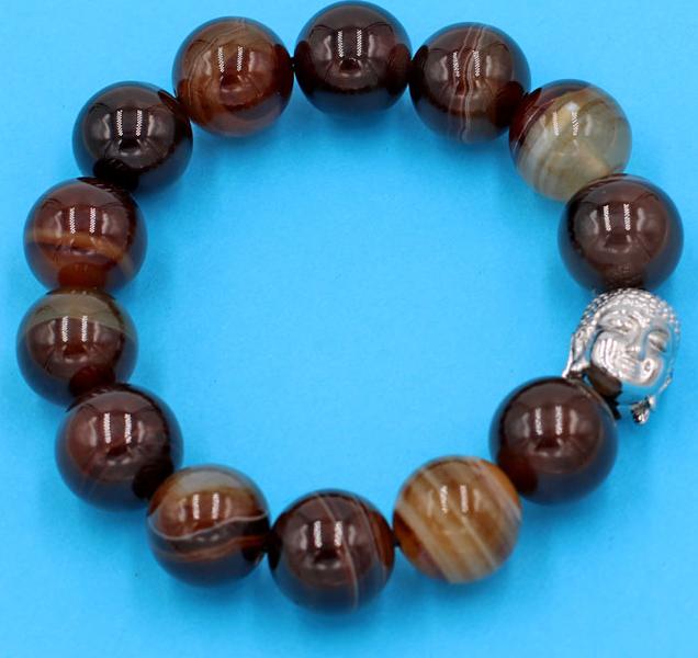 ✨Chuỗi tay mã não nâu sọc 14 ly - cẩn hạt Như Lai Inox trắng VMNNSNLT14 - hợp mệnh Kim, mệnh Thổ