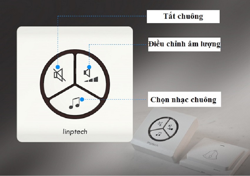 Tương tự như các loại chuông không dây khác, chuông cửa không dây thông minh Linptech cũng được thiết kế gồm 2 bộ phận chính: chuông báo và nút bấm. Nút nhấn của chuông được thiết kế hình vuông với các viền cạnh được uống cong lại rất hiên đại và sang trọng.