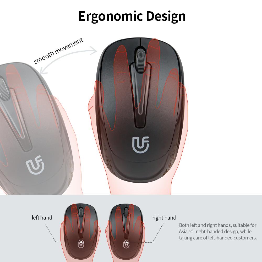 Features: 2.4GHz Wireless Connection: Works instantly when you plug the USB receiver into your computer or laptop. 700mAh built-in battery offers working time up to 23hrs (Light ON)/48hrs (Light OFF). Ergonomic Skin-friendly Design: With symmetrical