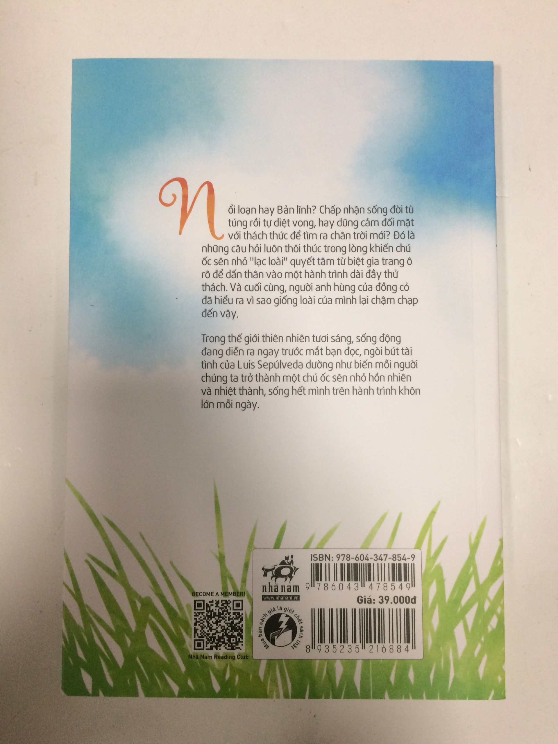 Giới thiệu sách Nổi loạn hay Bản lĩnh? Chấp nhận sống đời tù túng rồi tự diệt vong, hay dũng cảm đối mặt với thách thức để tìm ra chân trời mới? Đó là những câu hỏi luôn thôi thúc trong lòng khiến chú ốc sên nhỏ "lạc loài" quyết tâm từ biệt gia trang ô rô để dấn thân vào cuộc hành trình dài đầy thử thách. Và cuối cùng, người anh hùng của đồng cỏ đã hiểu ra vì sao giống loài của mình lại chậm chạp đến vậy. Trong thế giới thiên nhiên tươi sáng, sống động đang diễn ra ngay trước mắt bạn đọc, ngòi bút tài tình của Luis Sepulveda dường như biến mỗi người chúng ta thành một chú ốc sên nhỏ, hồn nhiên và nhiệt thành, sống hết mình trên hành trình khôn lớn mỗi ngày.