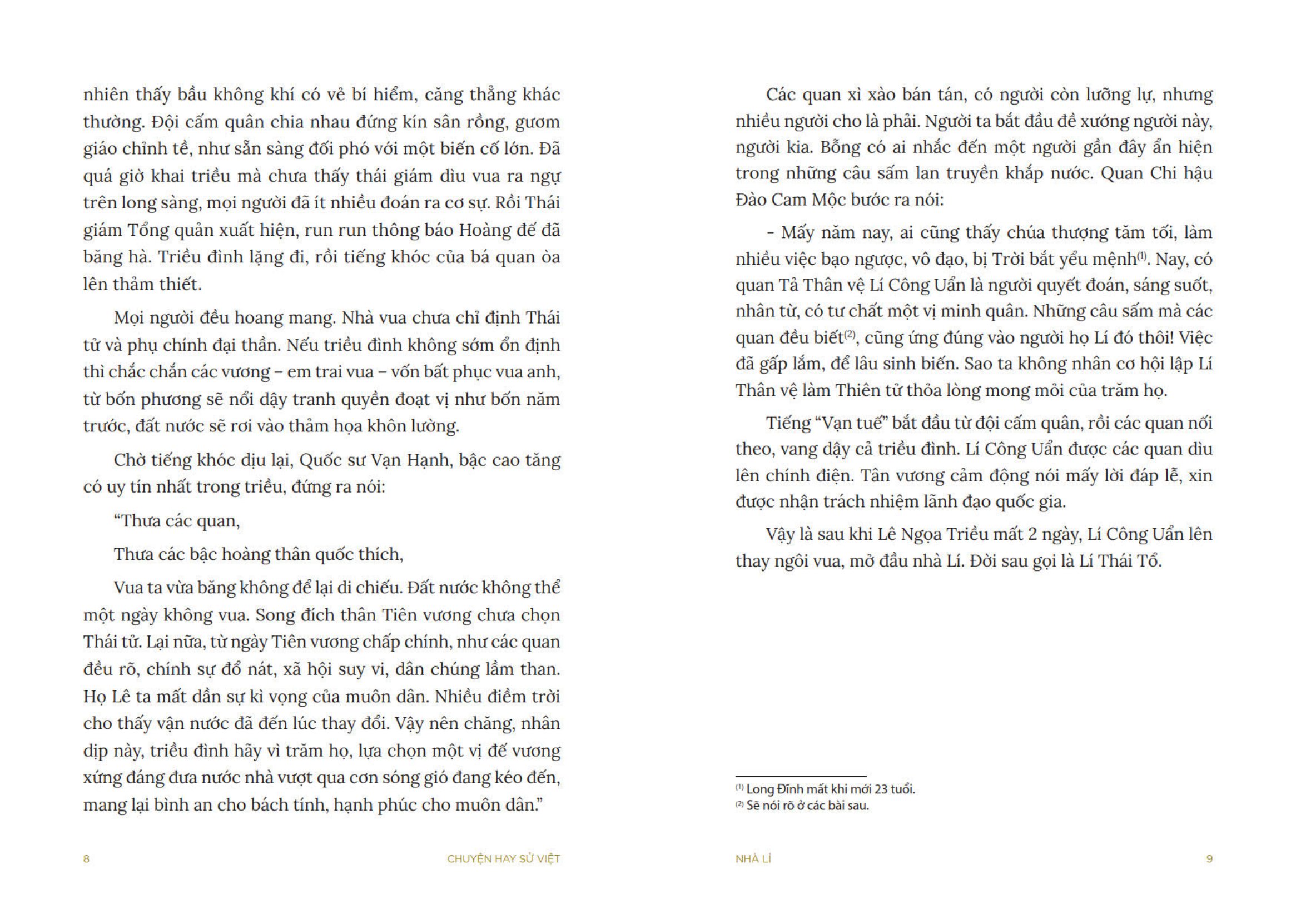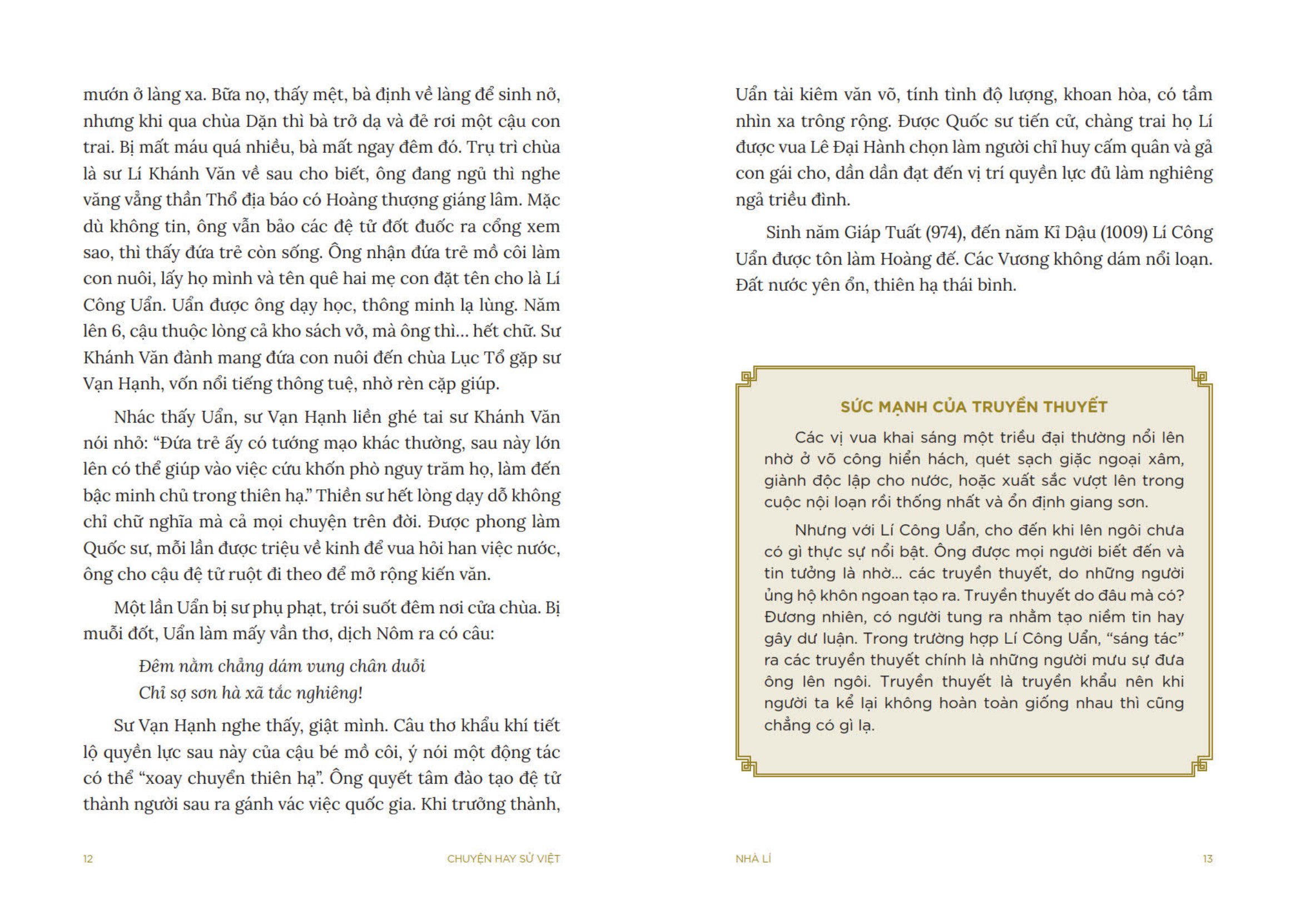 Lịch sử đất nước đã trải qua hàng nghìn năm với biết bao thời khắc huy hoàng và bi tráng. Bộ sách Chuyện Hay Sử Việt sẽ dẫn dắt bạn đọc đi ngược dòng thời gian, thông qua những sự kiện hào hùng, câu chuyện về những nhân vật được ghi trong chính sử và cả các huyền tích, giai thoại lưu truyền trong dân gian.