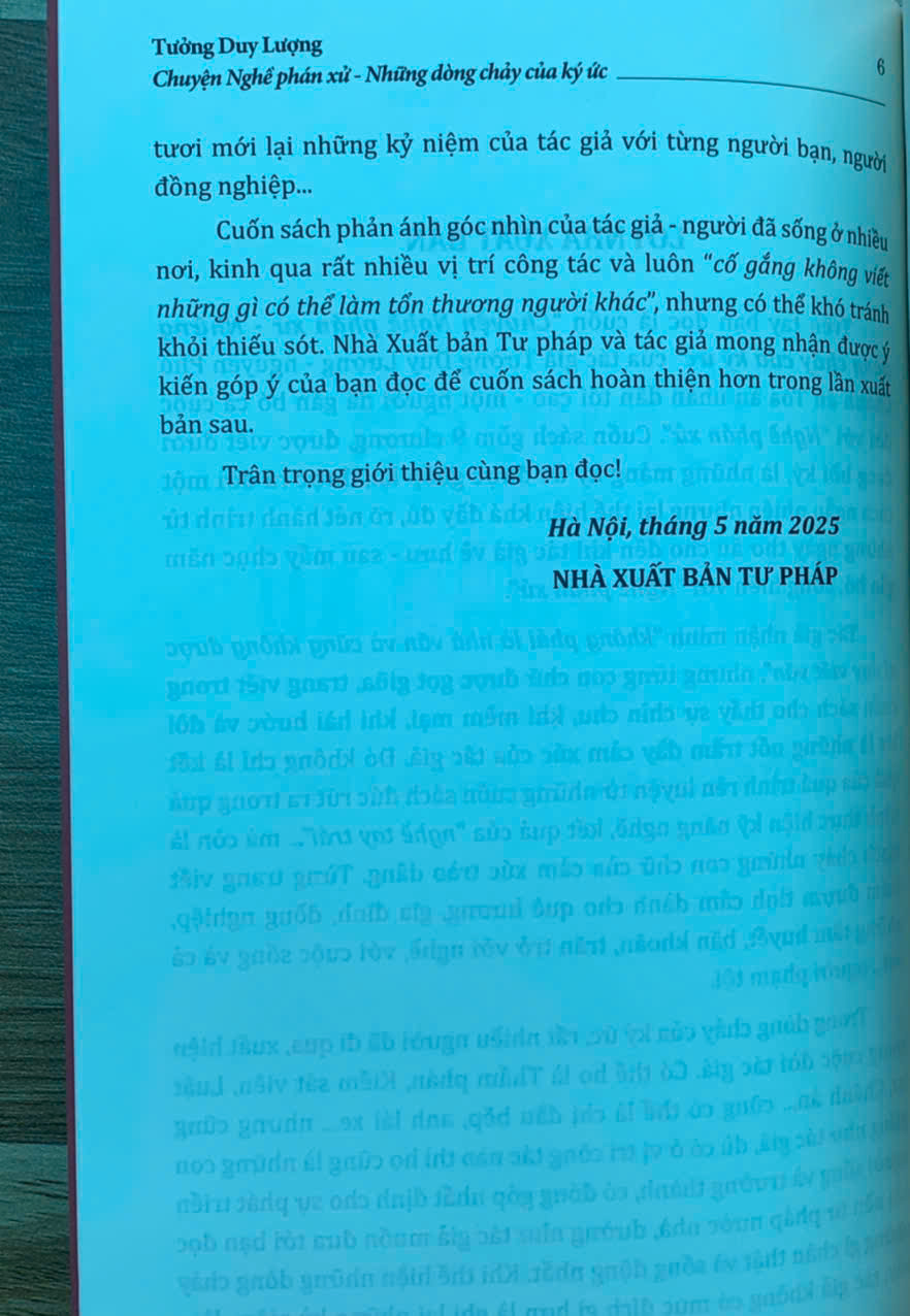Cuốn sách phản ánh góc nhìn của tác giả- người đã sống ở nhiều nơi, kinh qua rất nhiều vị trí công tác và luôn "cố gắng không viết những gì có thể làm tổn thương người khác", nhưng có thể khó tránh khỏi thiếu sót. Nhà Xuất bản Tư pháp và tác giả mong nhận được ý kiến góp ý của bạn đọc để cuốn sách hoàn thiện hơn trong lần xuất bản sau.