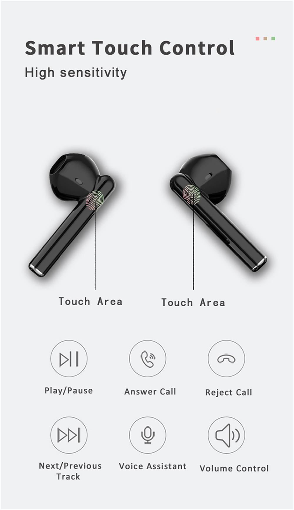 Features: BT 5.0 brings high data transfer speed, no latency, stable connection and low power consumption. Multi-functional Touch control let you answer/reject calls, play/pause songs, wake up voice assistant, by touching these in-ear wireless headphones