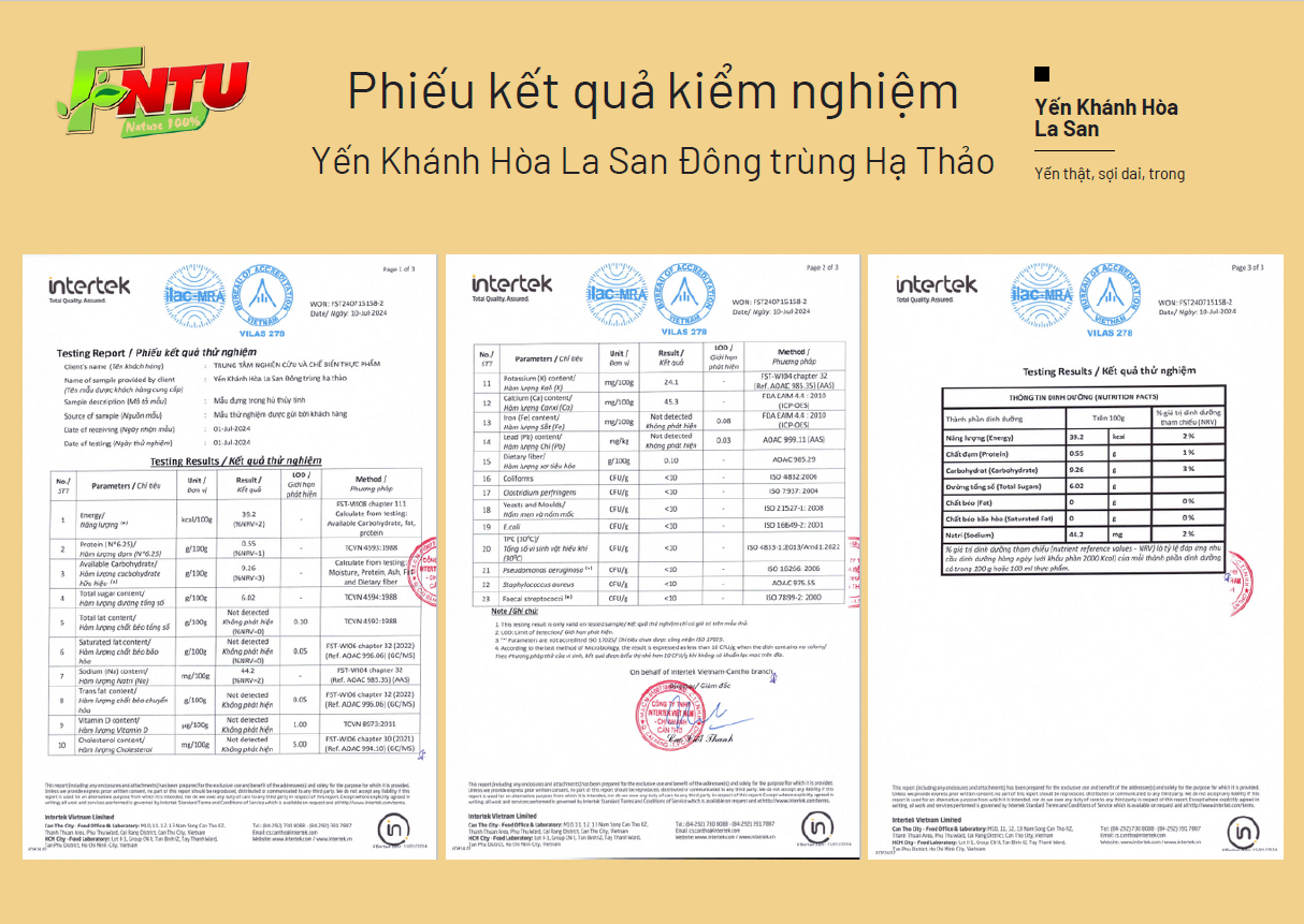 • Chứng nhận bảng Nutrition Facts: Sản phẩm đã được Tổ chức Intertek, Ilac-MRA, Bureau of Accreditation phân tích và cấp chứng nhận, đảm bảo cung cấp đầy đủ và chính xác các thông tin dinh dưỡng cho người tiêu dùng.