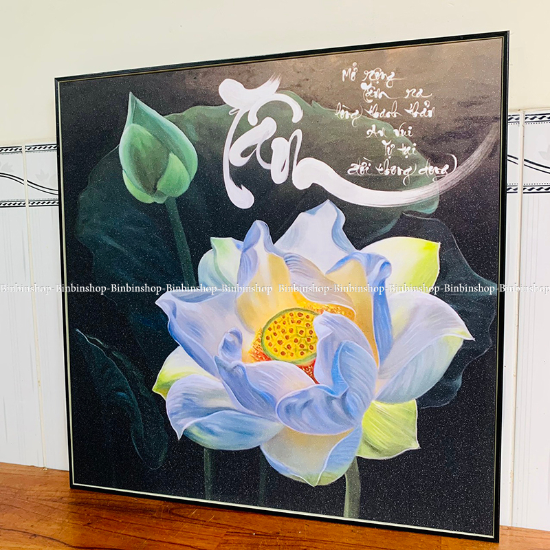 Mua tại TiktokTranh treo tường chữ tâm và hoa sen trắng