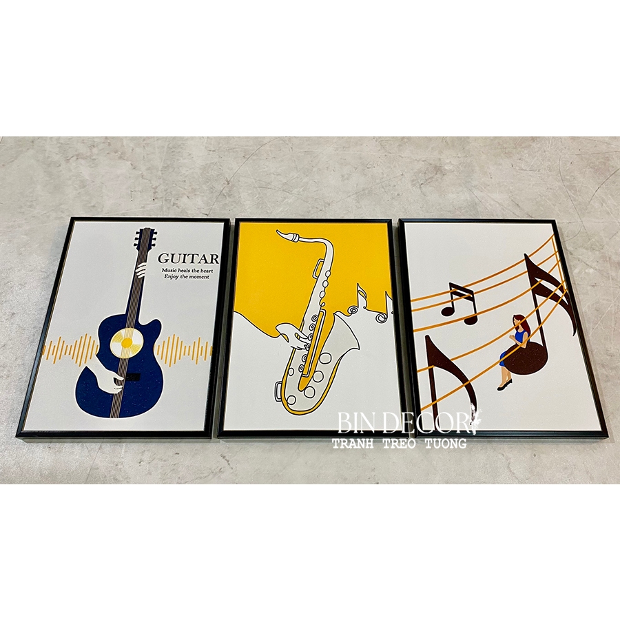 Tranh treo tường trang trí decor âm nhạc 12 - Kích thước của tranh : Kích thước : 25x35cmx3 tấm - 30x45cmx3 tấm - 40x60cmx3 tấm - 50x70cmx3 tấm - Khách hàng muốn thay đổi