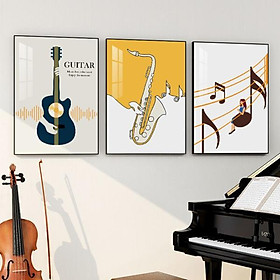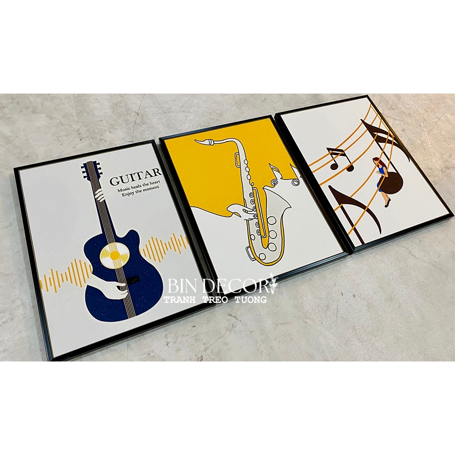 Tranh treo tường trang trí decor âm nhạc 25 - Kích thước của tranh : Kích thước : 25x35cmx3 tấm - 30x45cmx3 tấm - 40x60cmx3 tấm - Chất liệu : Tráng gương - kim sa