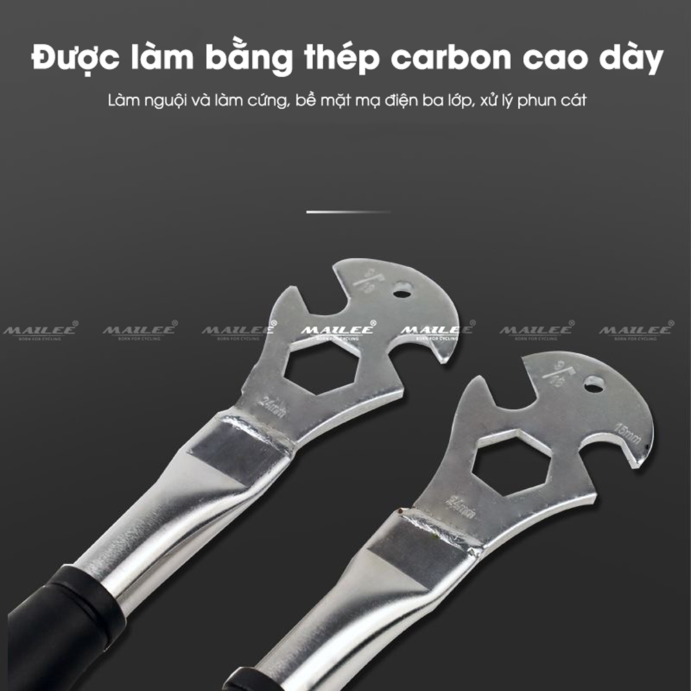 Cờ lê Tháo bàn đạp pedan xe đạp, tháo trục bánh xe trước sau, size 15mm 24mm 9/16" chất liệu thép không gỉ, tay cầm PVC chống trượt - Mai Lee Dụng cụ tháo dỡ bàn đạp xe đạp Dụng cụ tháo dỡ bàn đạp xe đạp được làm từ thép cứng cáp, trải qua quá trình tôi luyện và phủ 3 lớp mạ điện, chống gỉ sét hiệu quả. Bề mặt sản phẩm được xử lý phun cát, tạo độ bám chắc chắn.